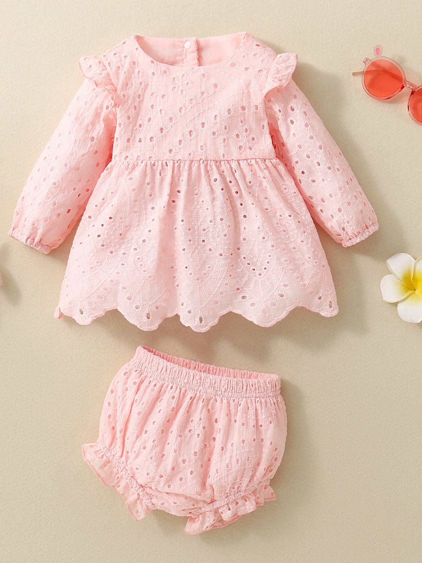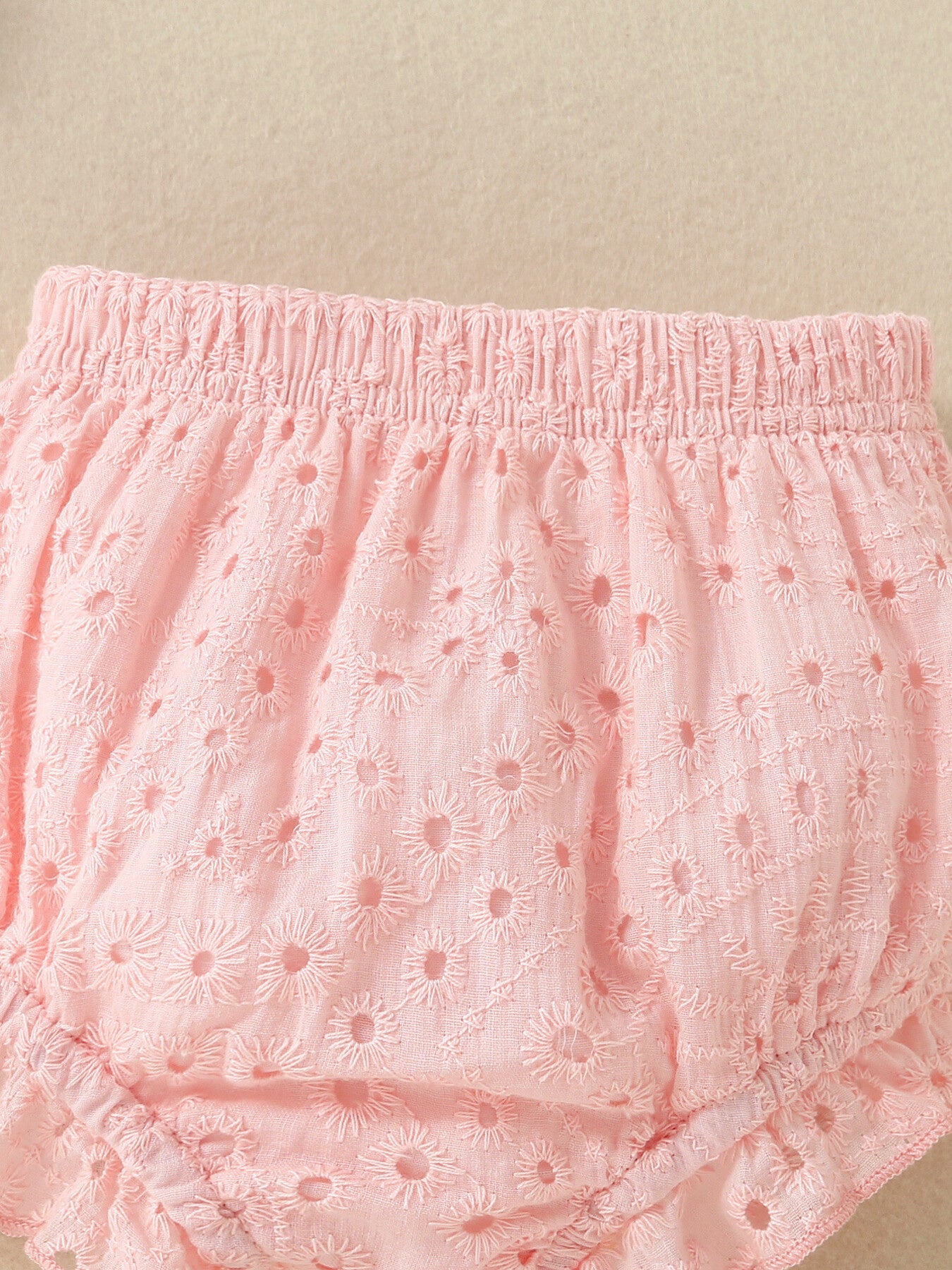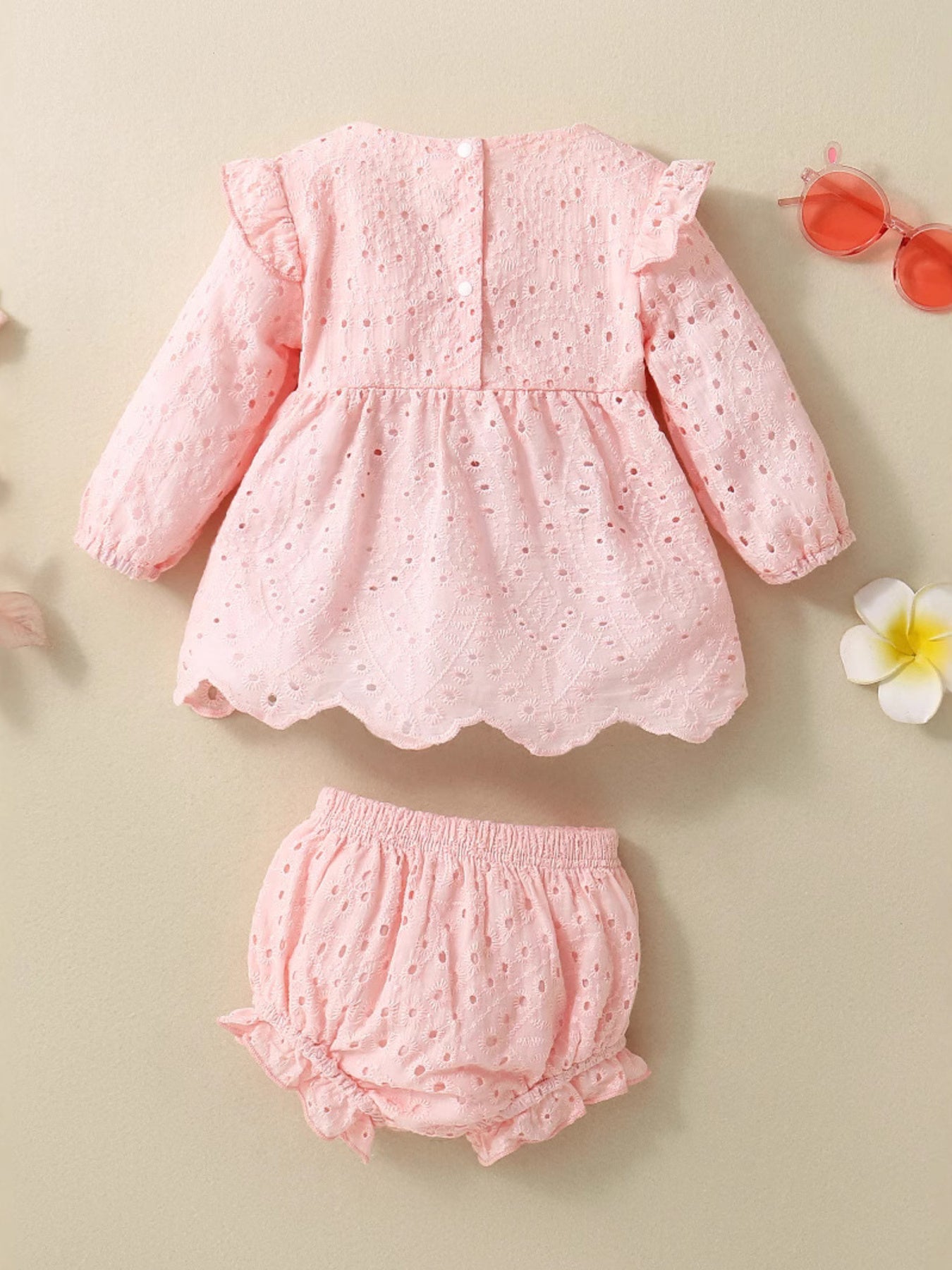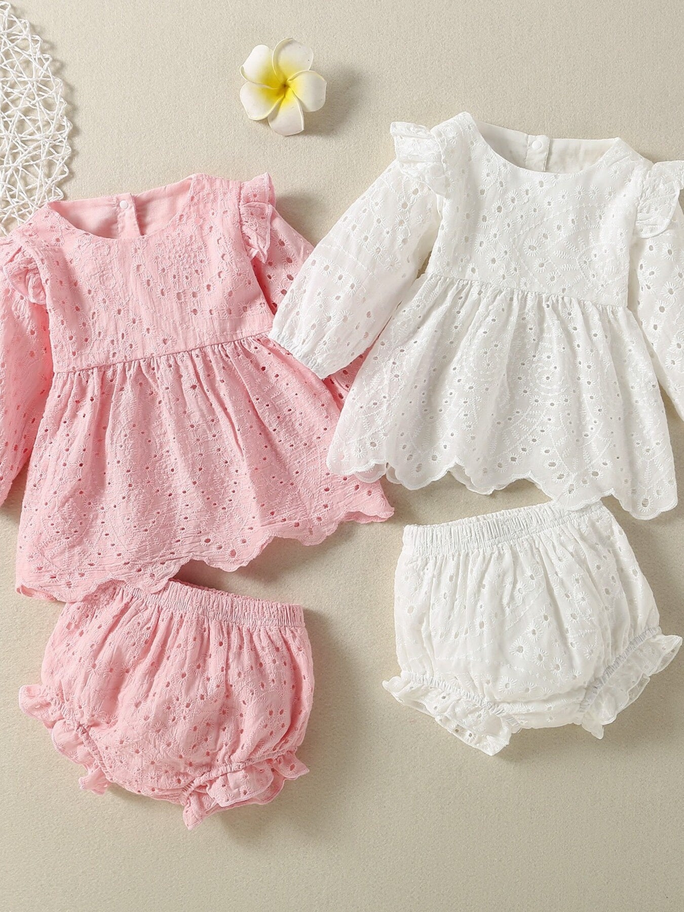 Children's Eyelet Embroidered Ruffled Top and Shorts Set