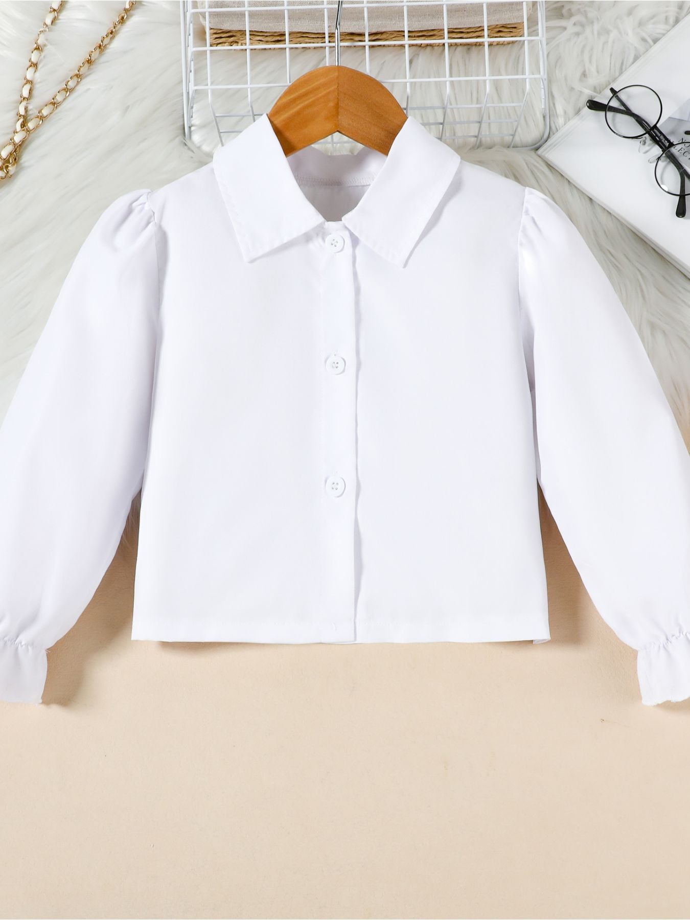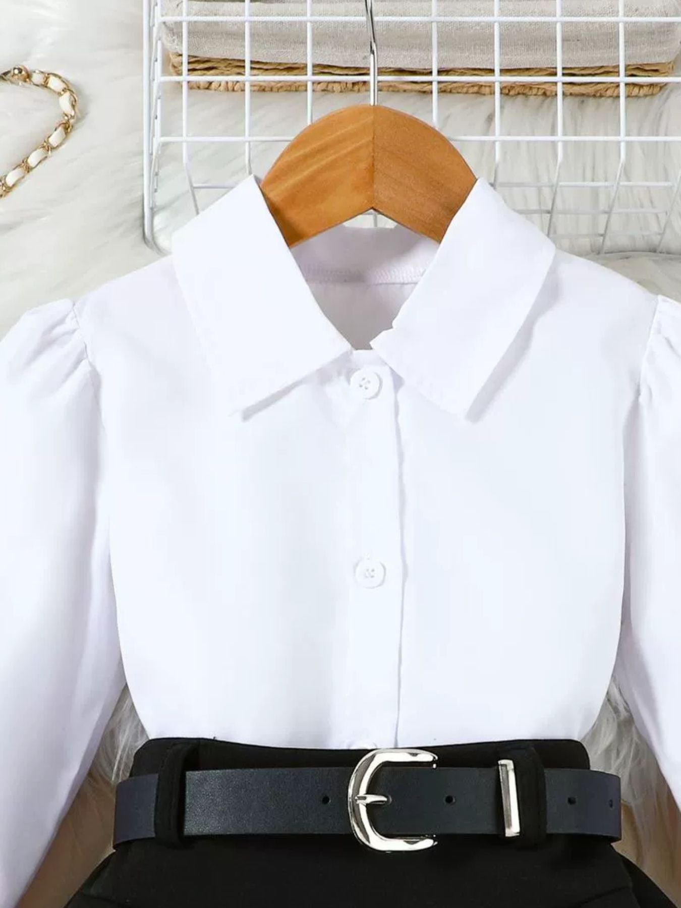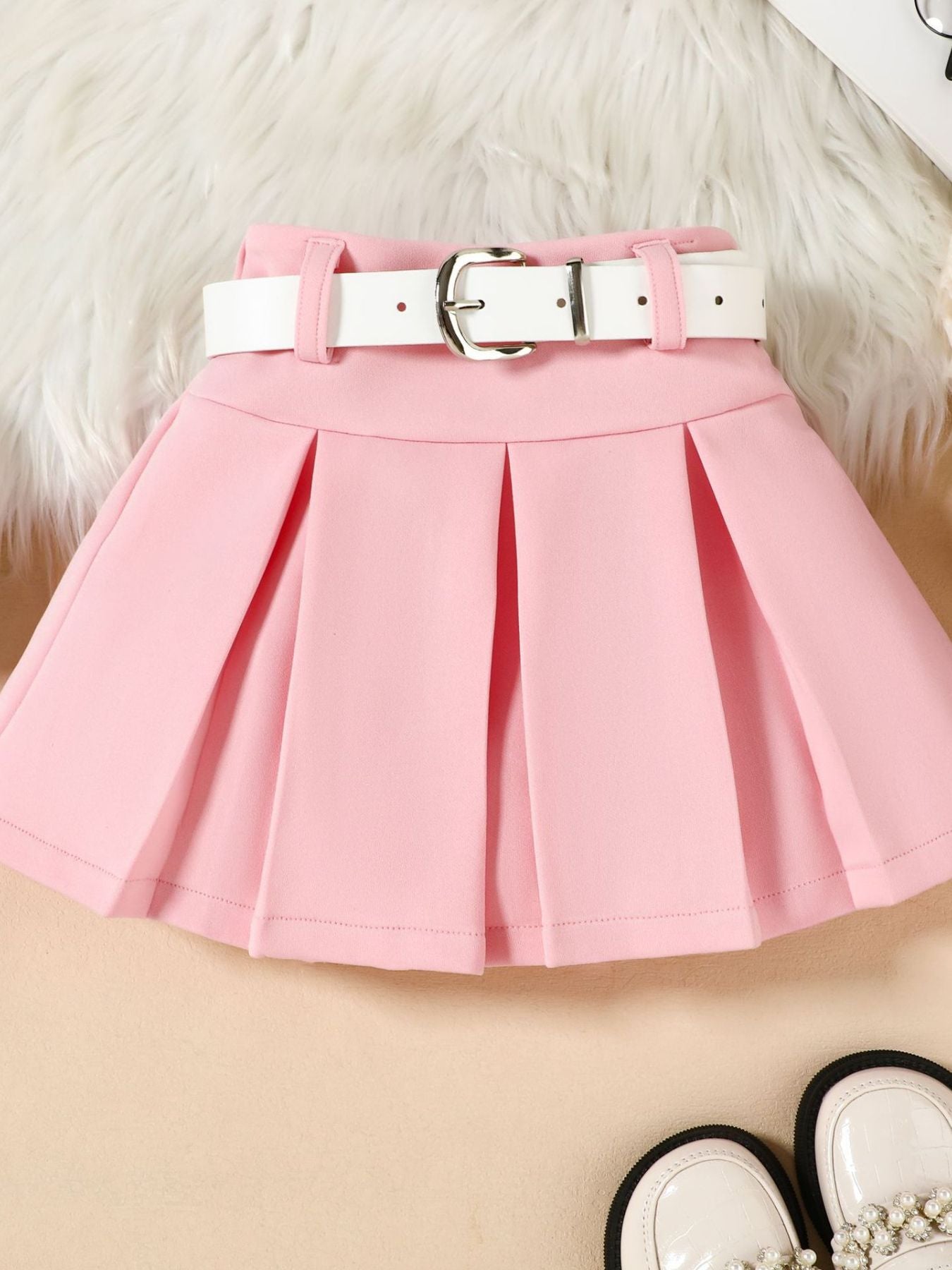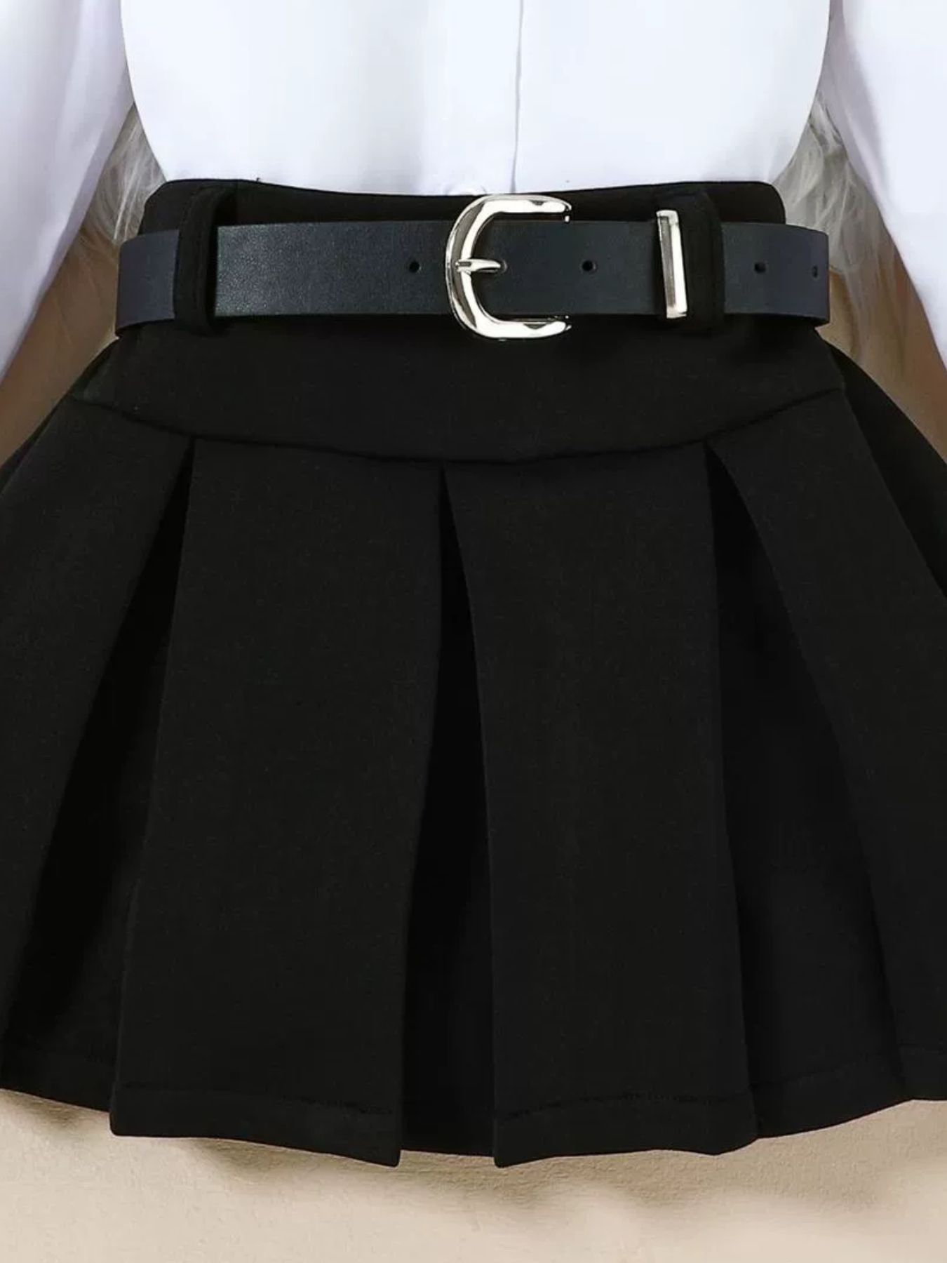 Children's Long Sleeve Shirt & Pleated Skirt Set with Belt