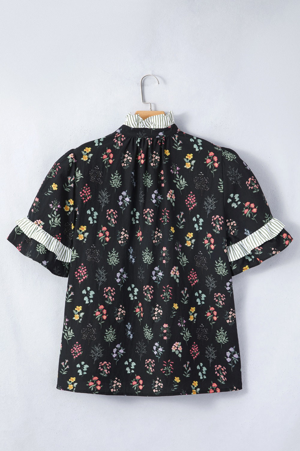 Contrast Frilled Trim Short Sleeve Floral Shirt