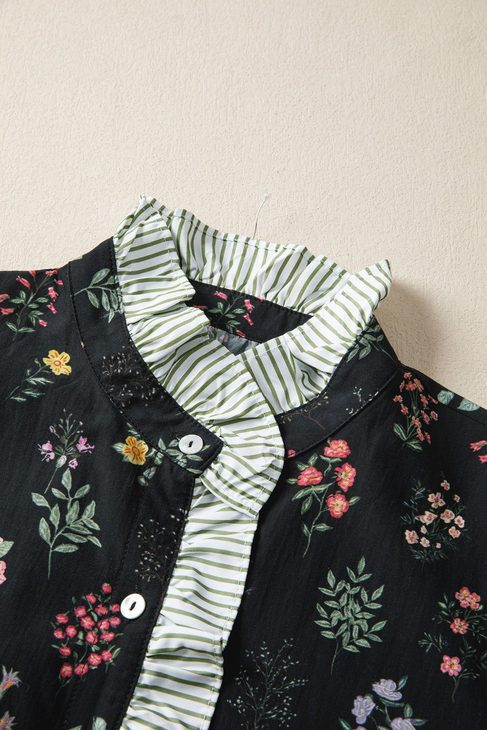 • Features:Buttoned,Ruffled