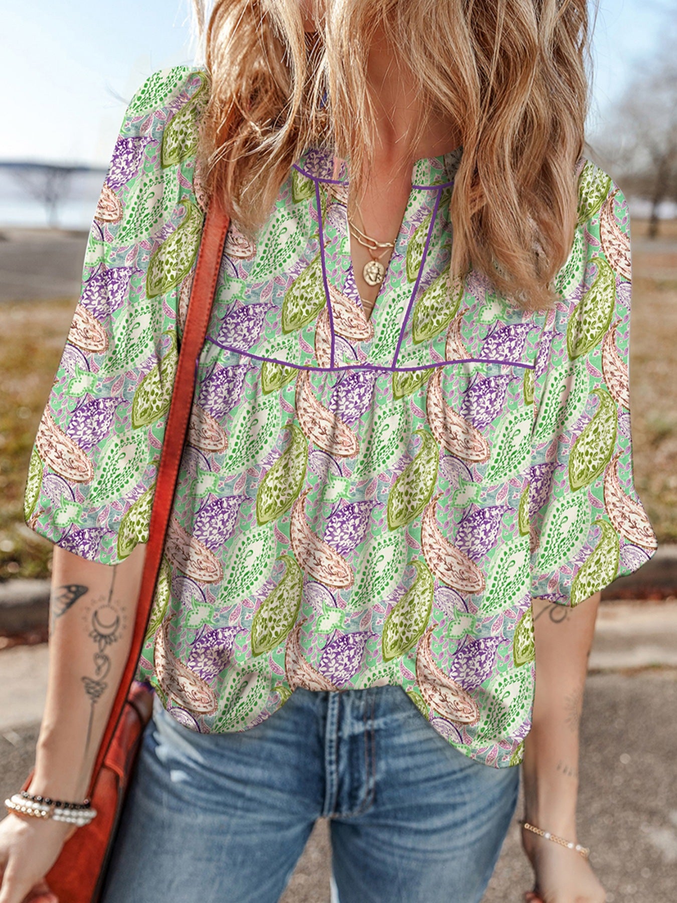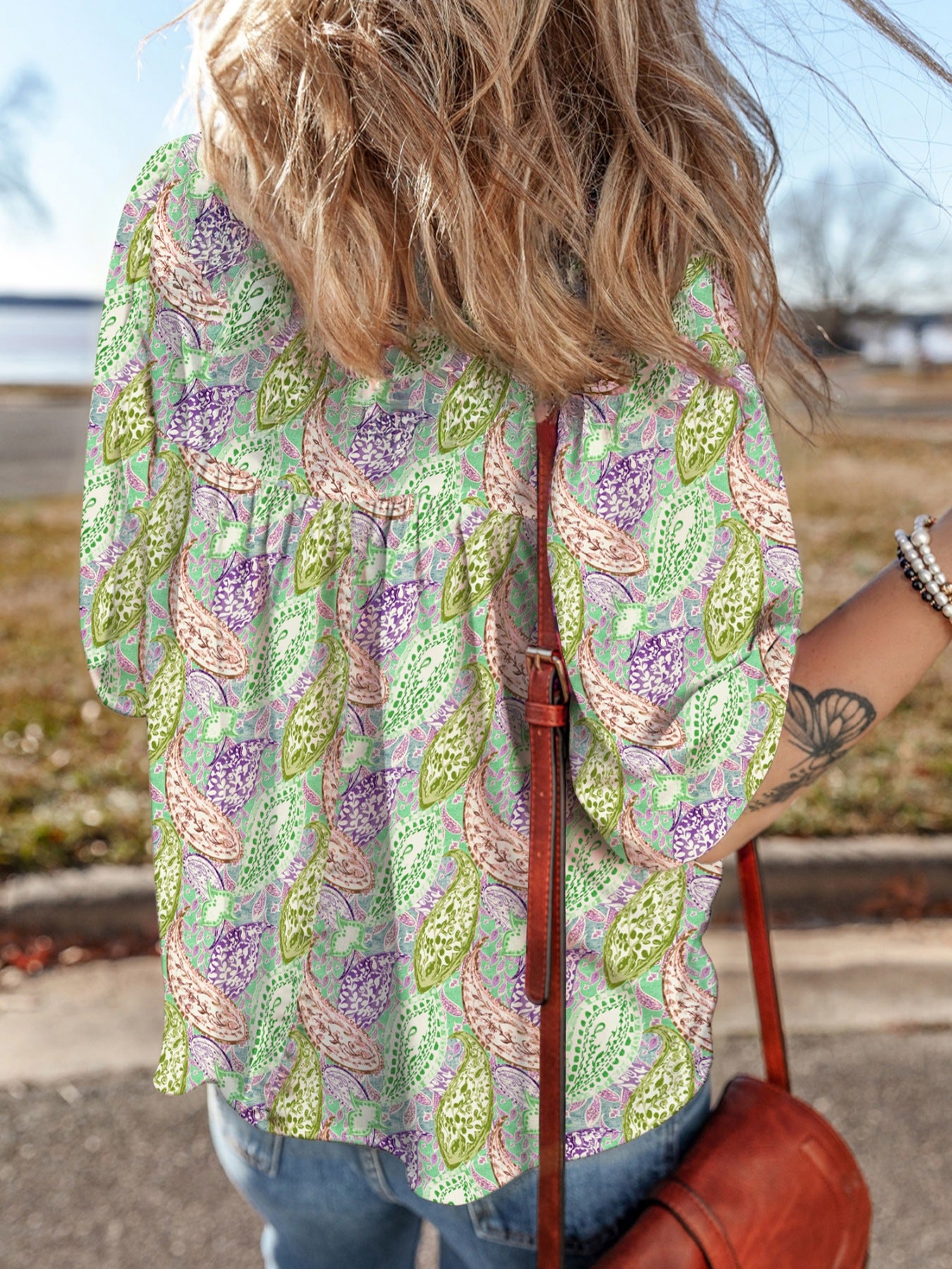 Paisley Print Half Puff Sleeve Blouse