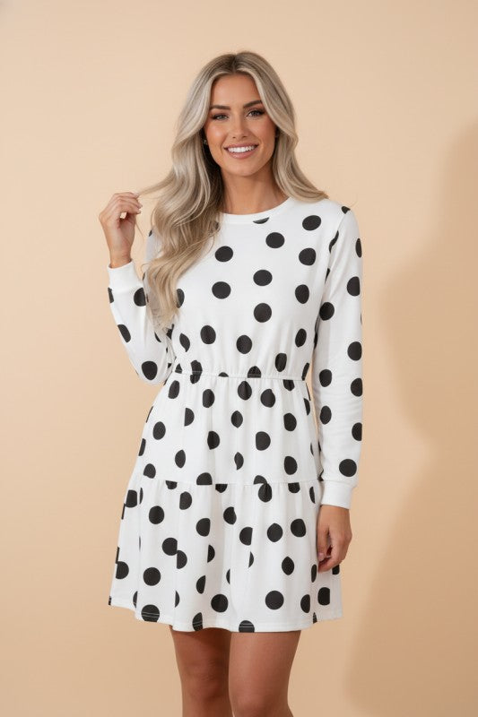 Polka Dot Long Sleeve Flared Mini Dress