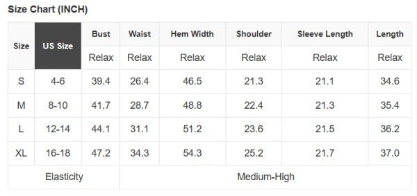 See size chart for approximate measurements