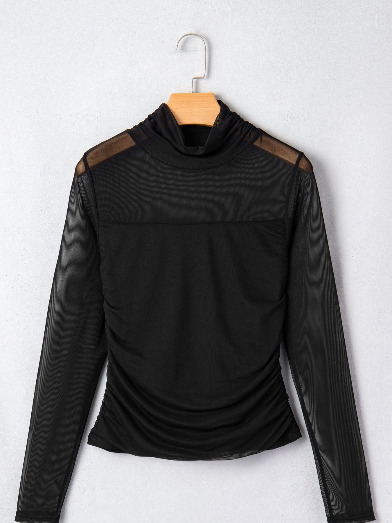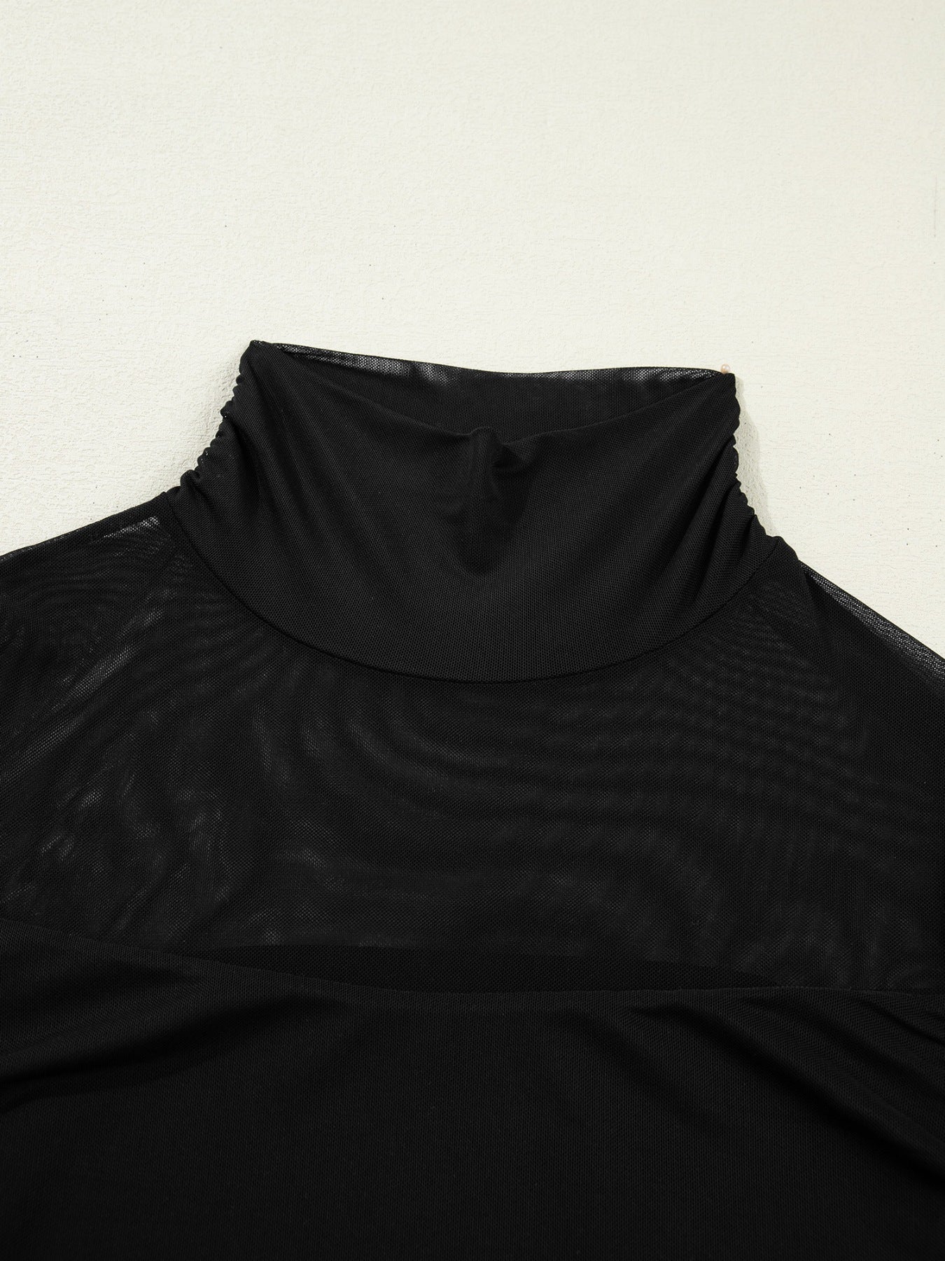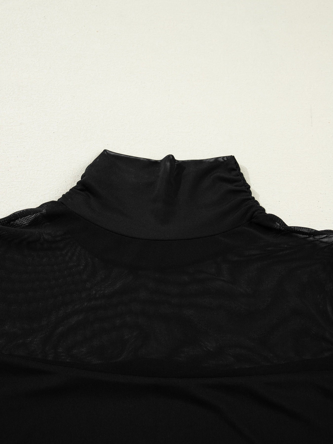 Sheer Mesh Patchwork High Neck Long Sleeve Top