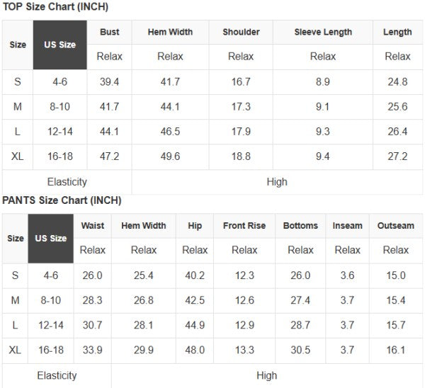See size chart for approximate measurements