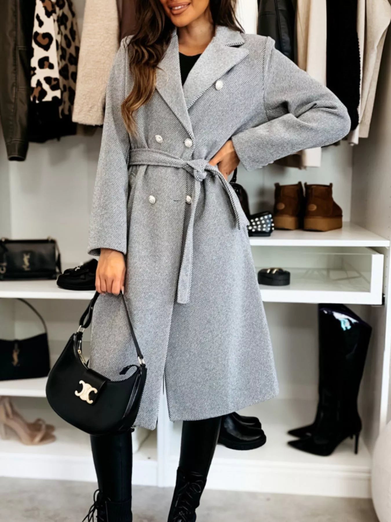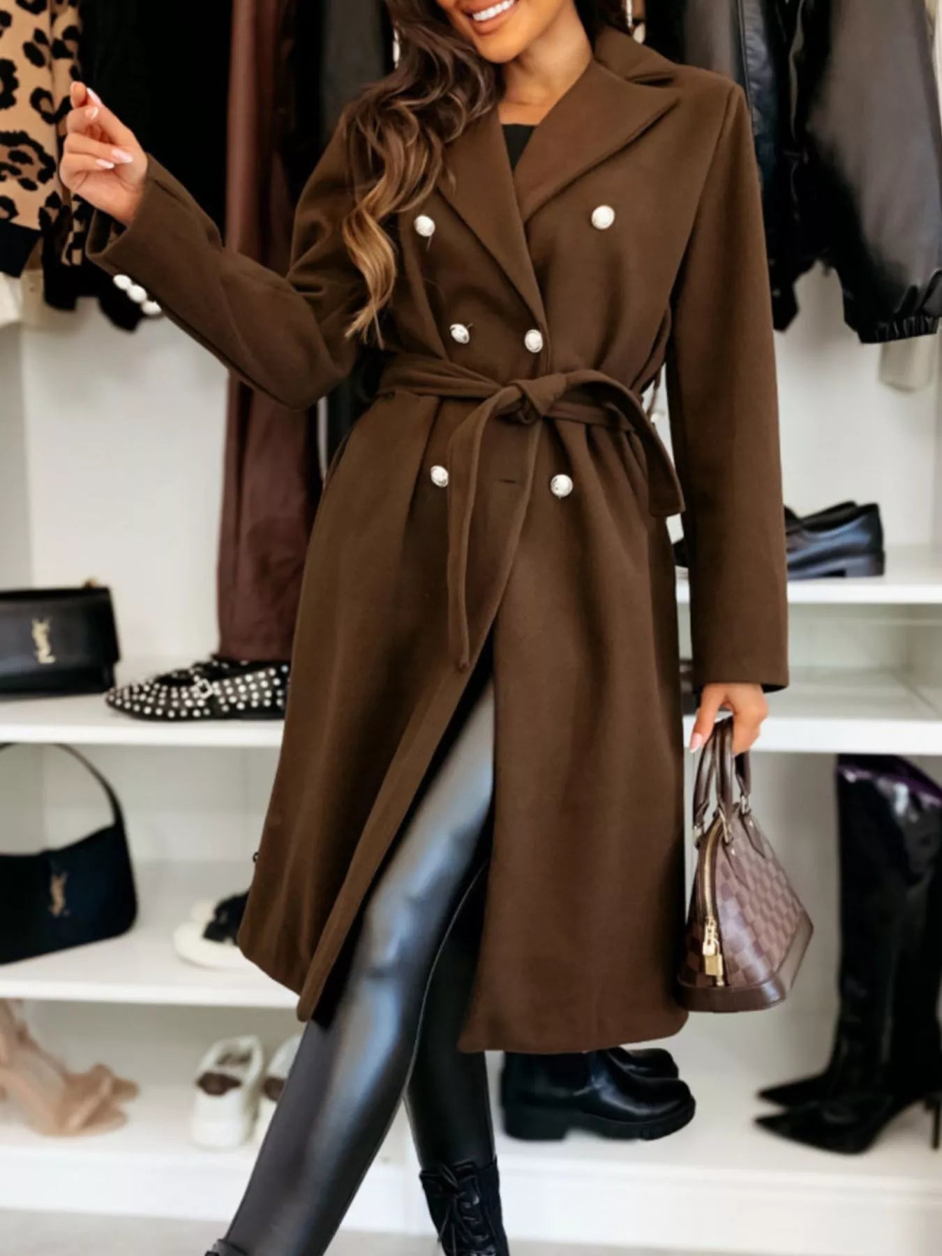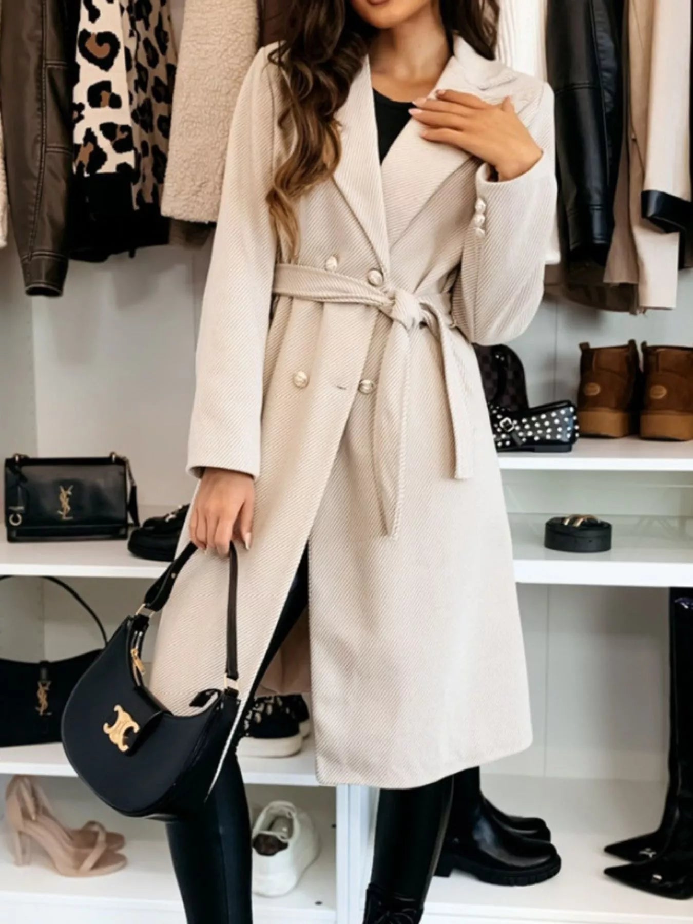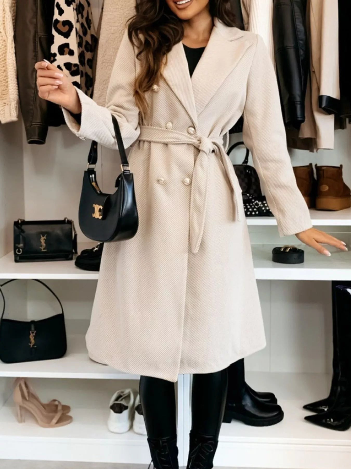 Double-Breasted Tie Waist Overcoat