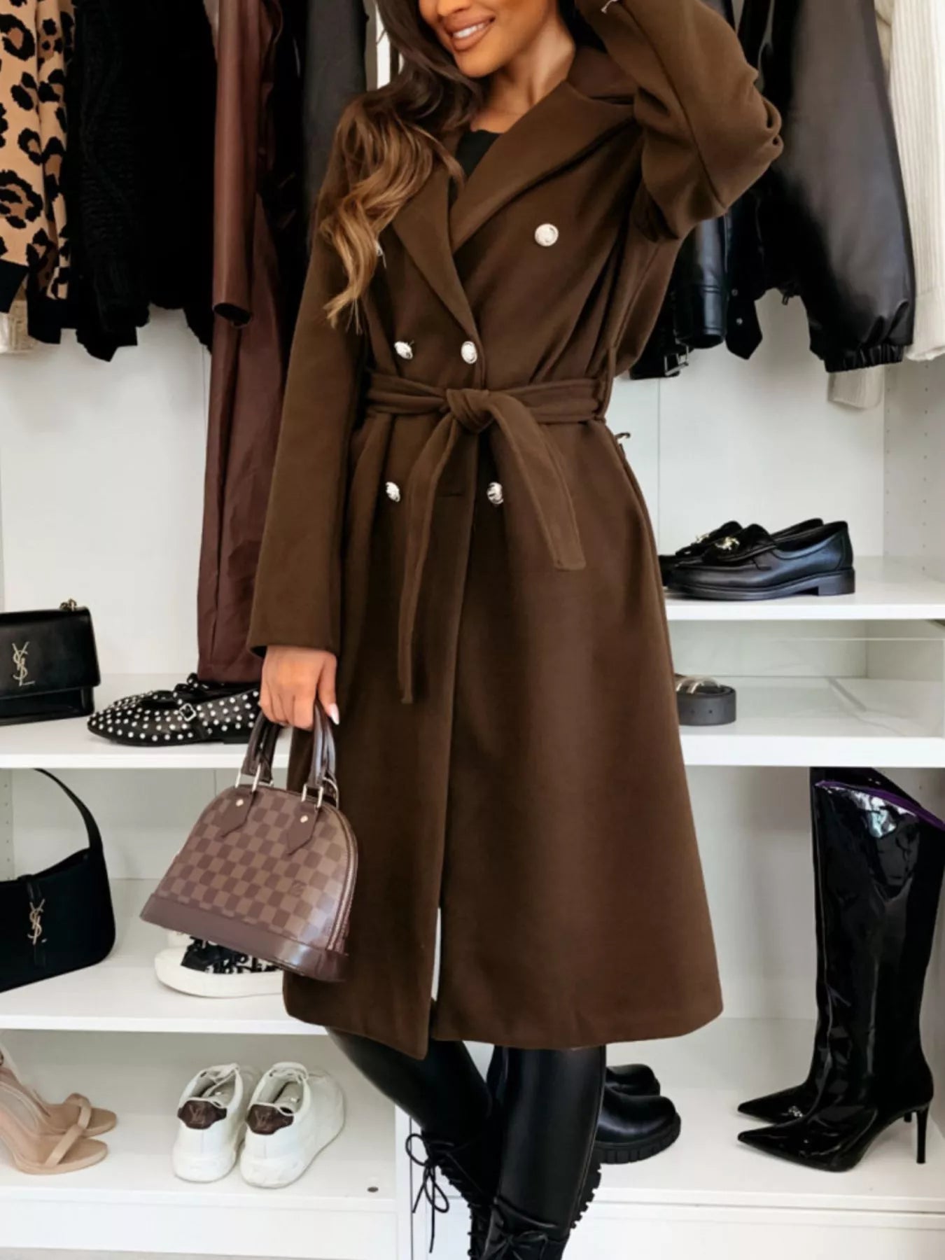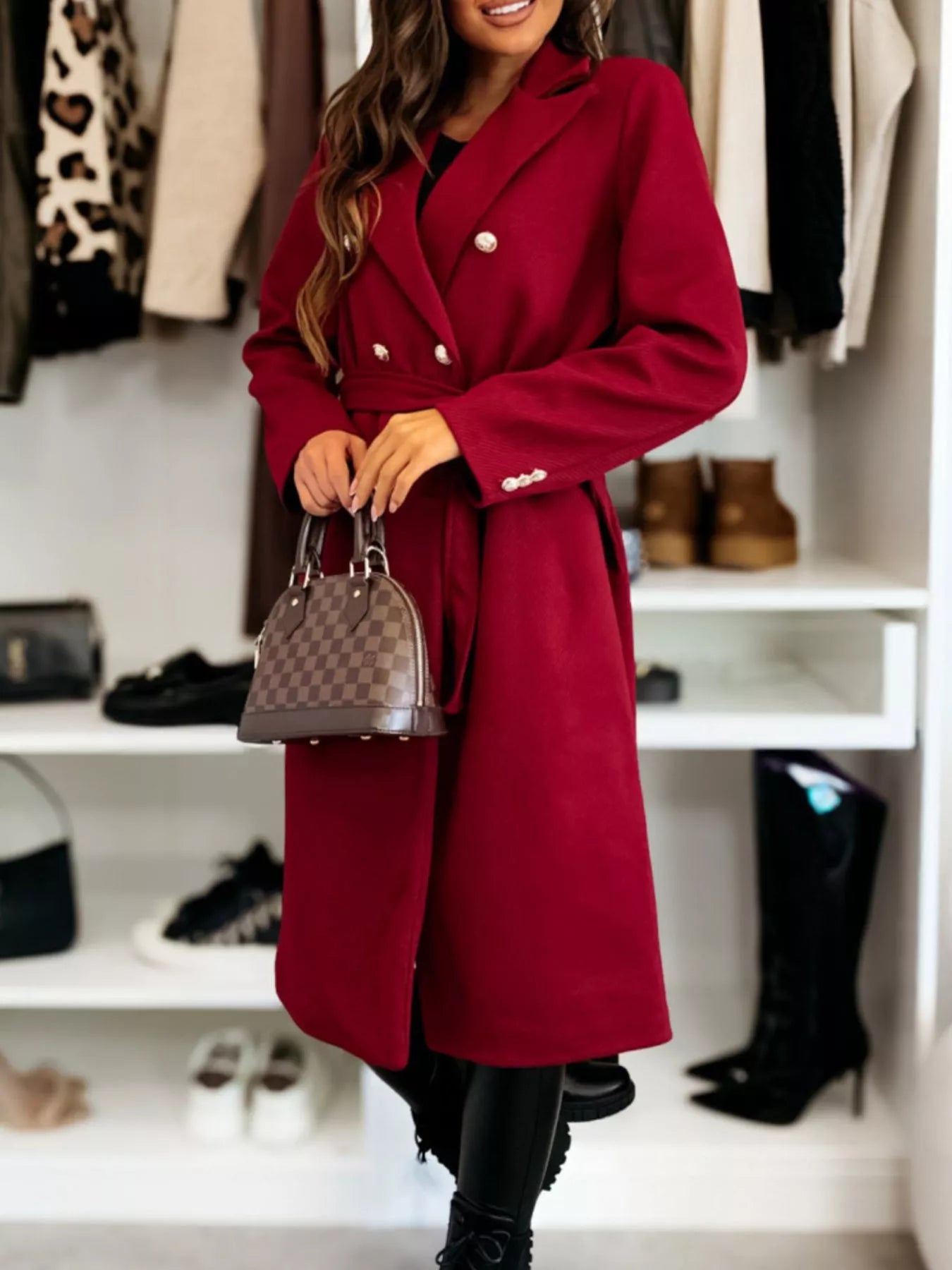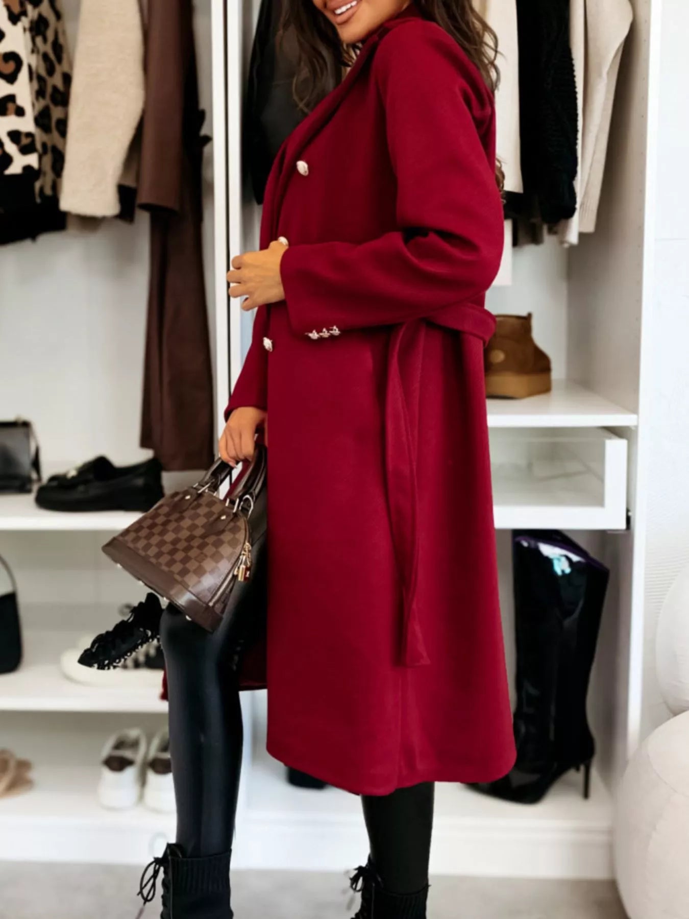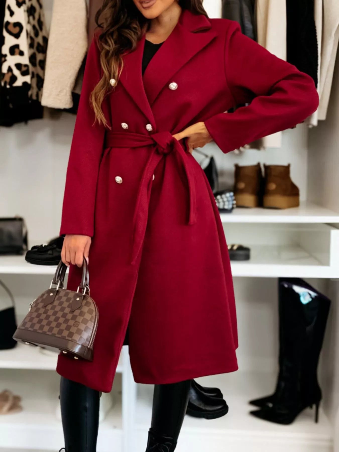Double-Breasted Tie Waist Overcoat