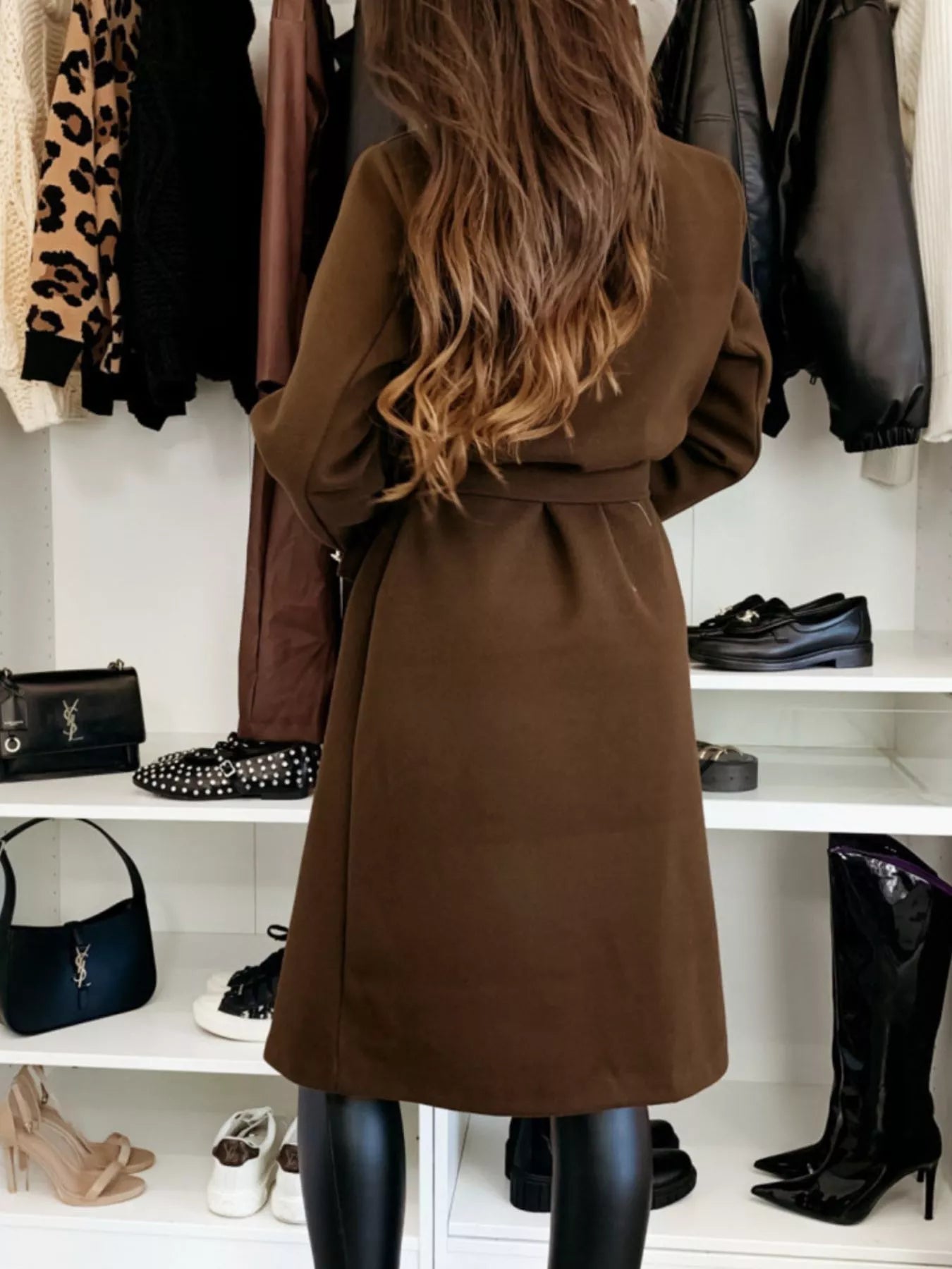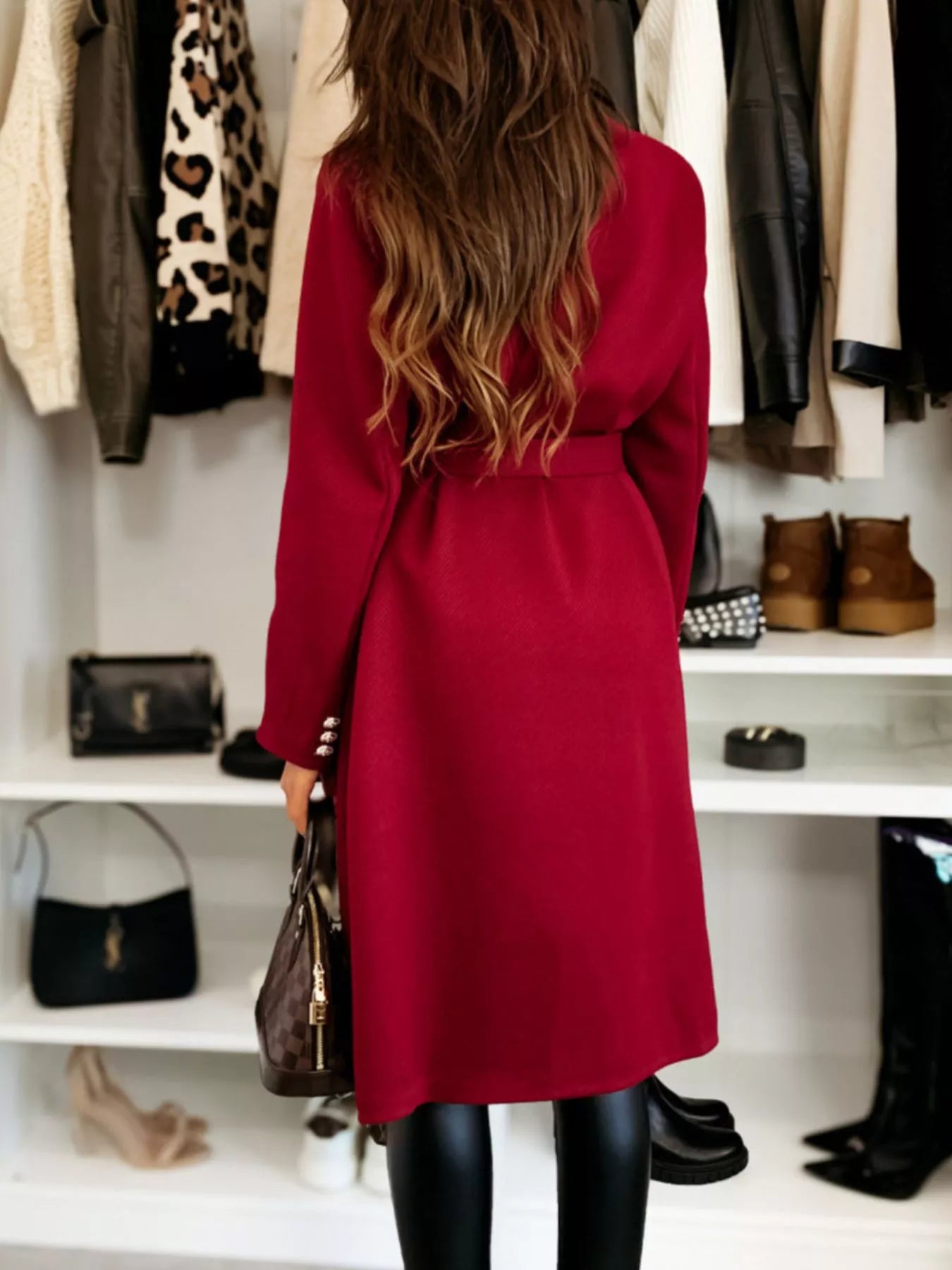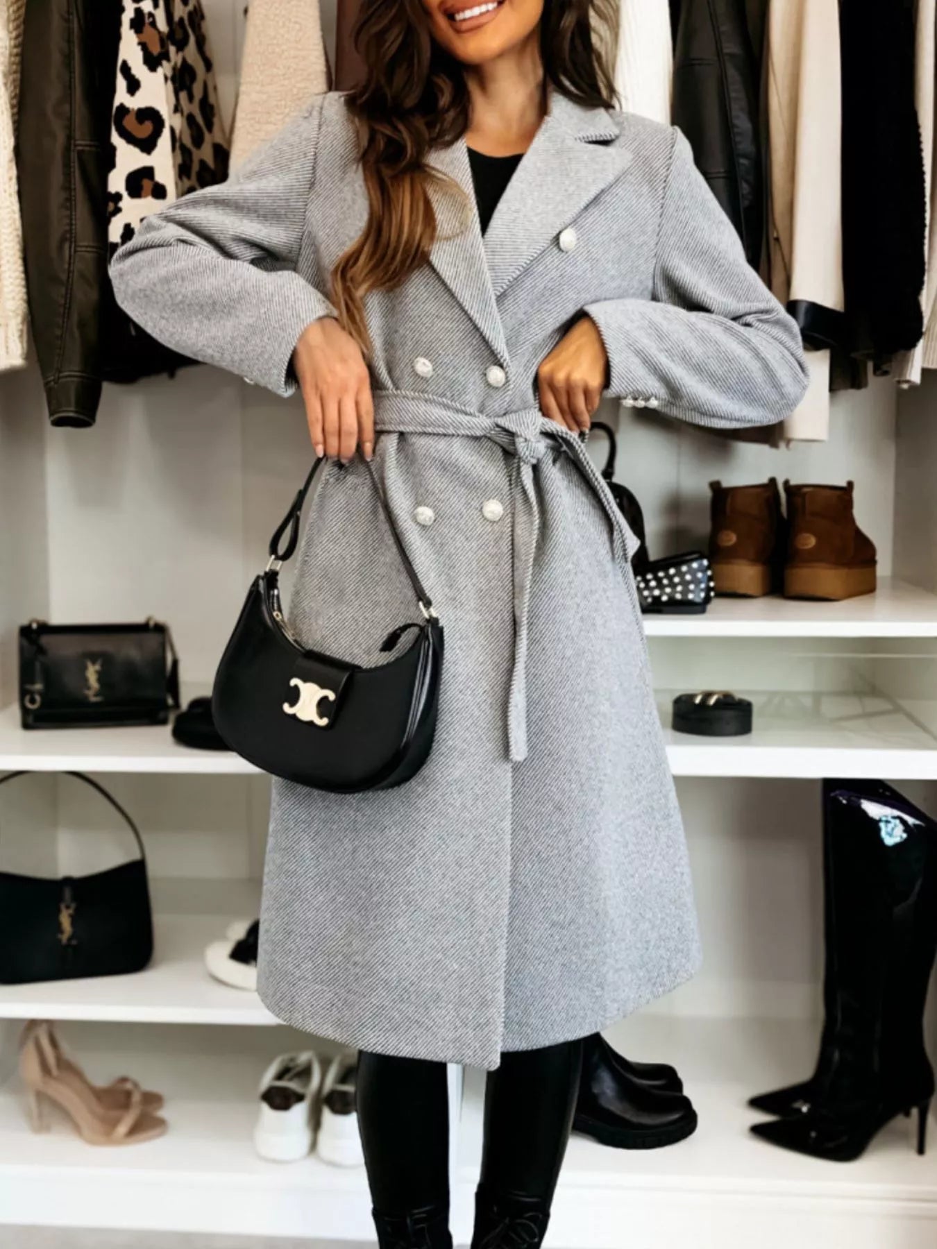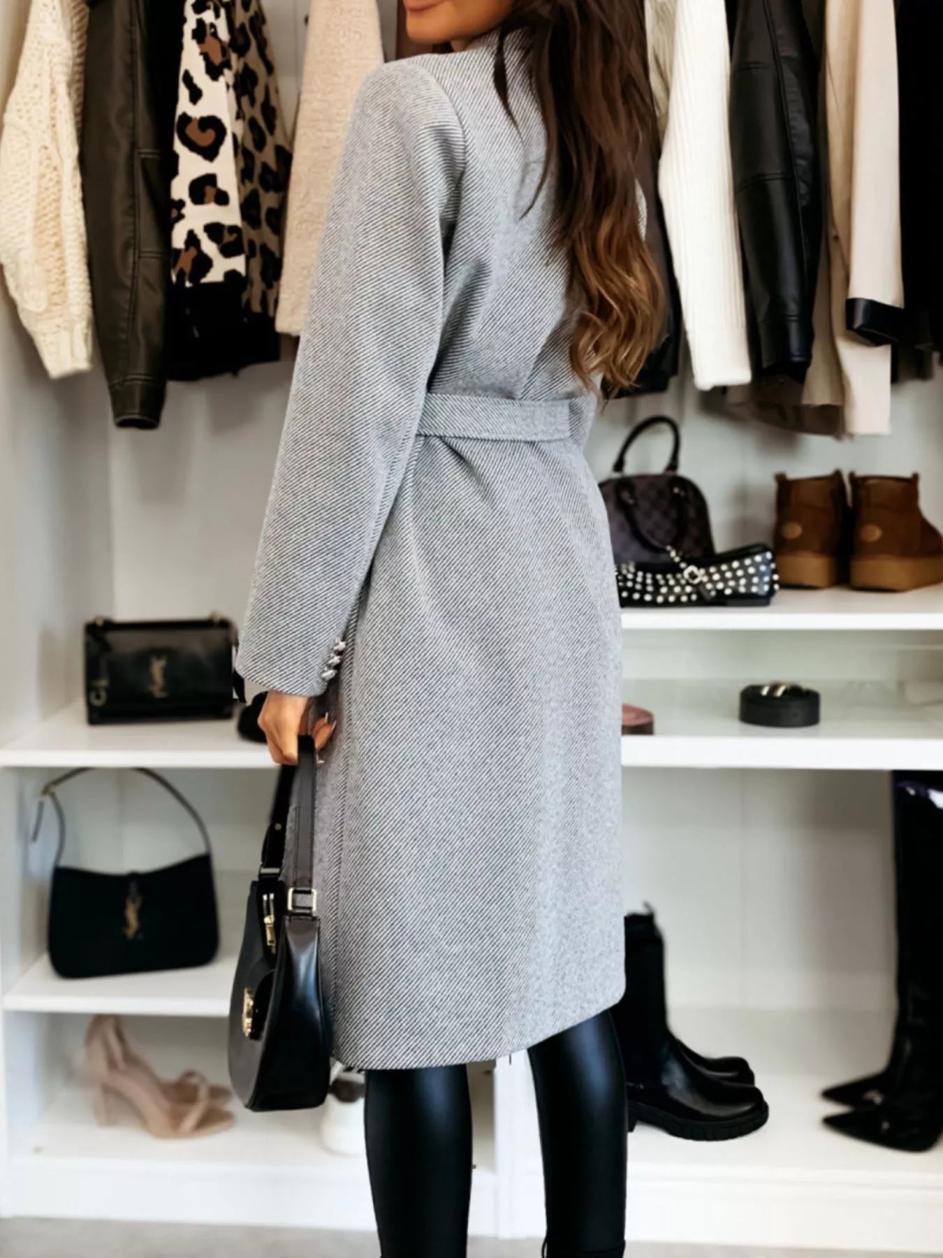 Double-Breasted Tie Waist Overcoat