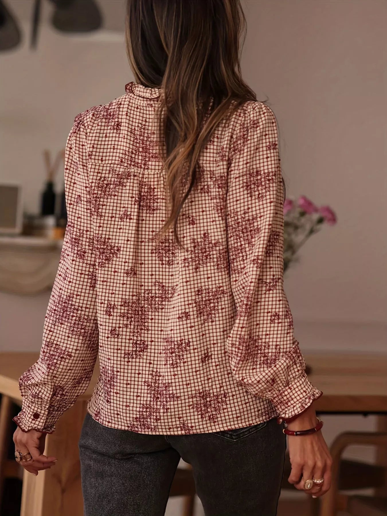 Frill Plaid Button Up Shirt