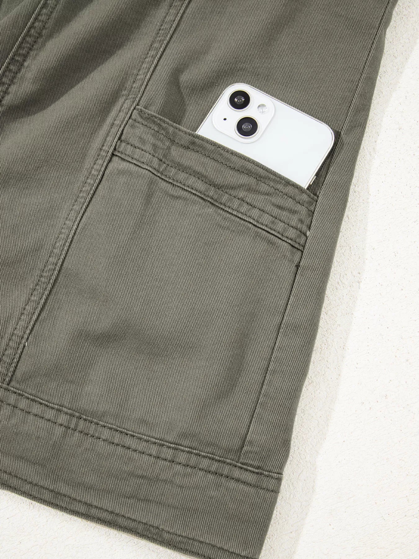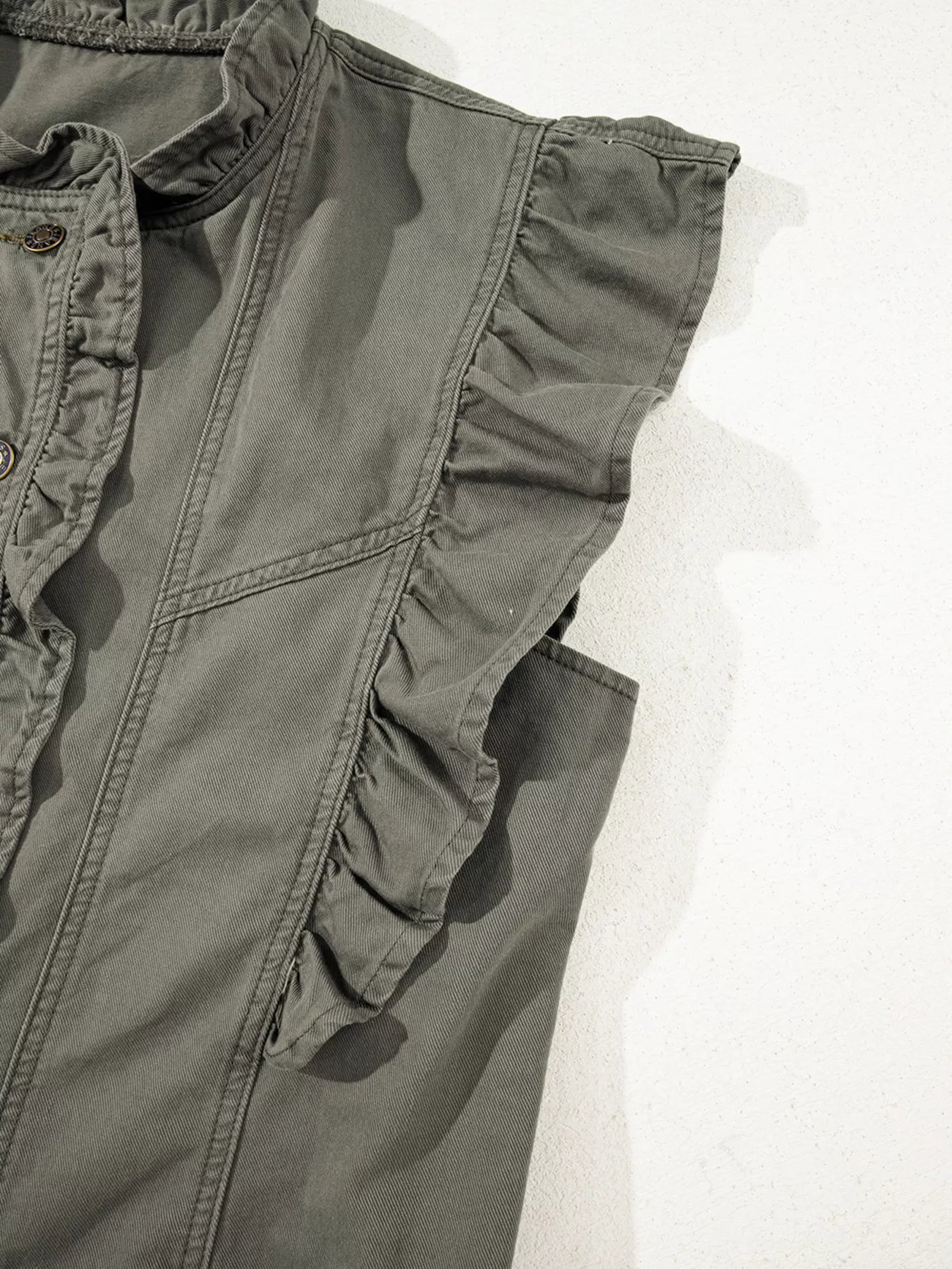 BiBi Camo Sleeve French Terry Top with Frayed Edge