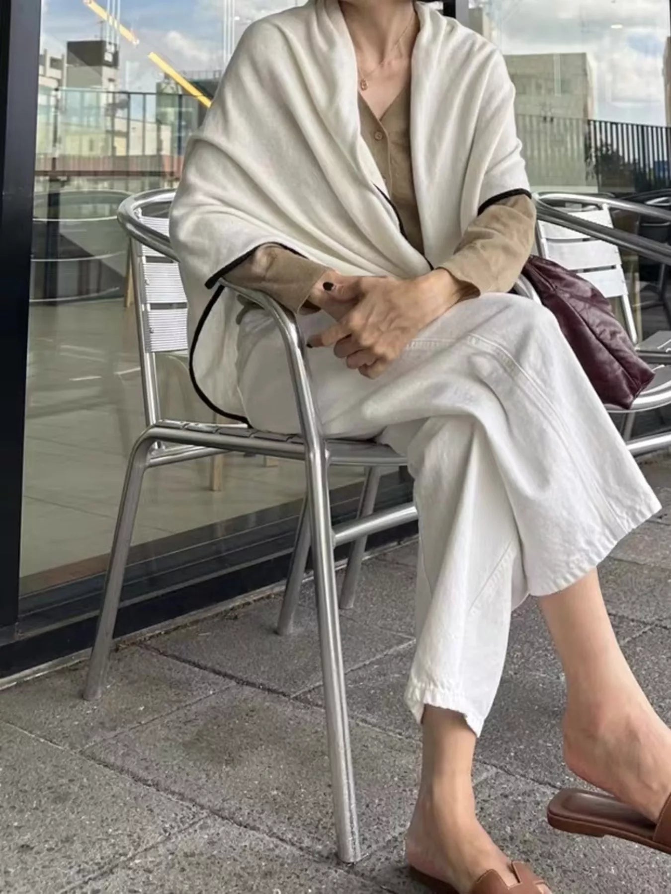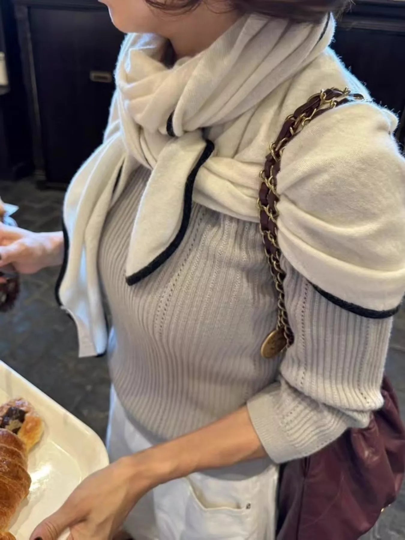 100% Wool Contrast Trim Scarf