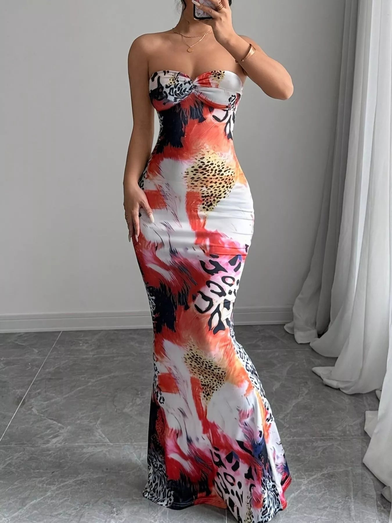 Abstract Print Bodycon Sweetheart Neck Tube Maxi Dress