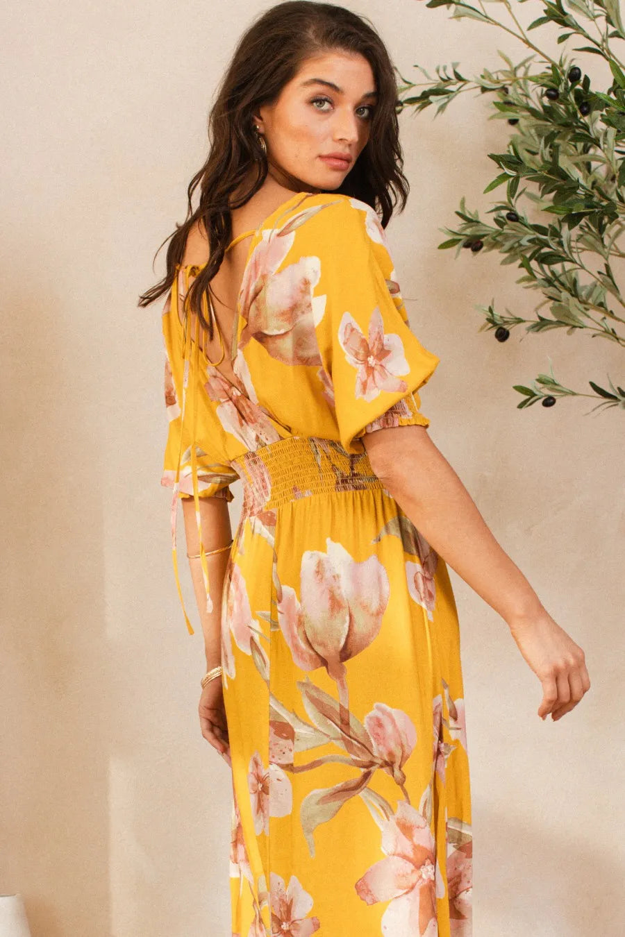 BiBi Floral Print Open Tie Back Maxi Dress