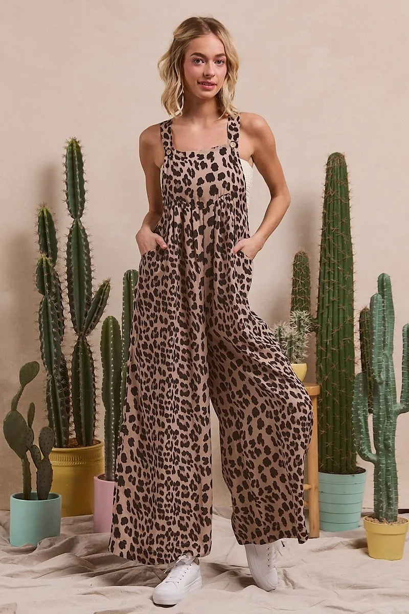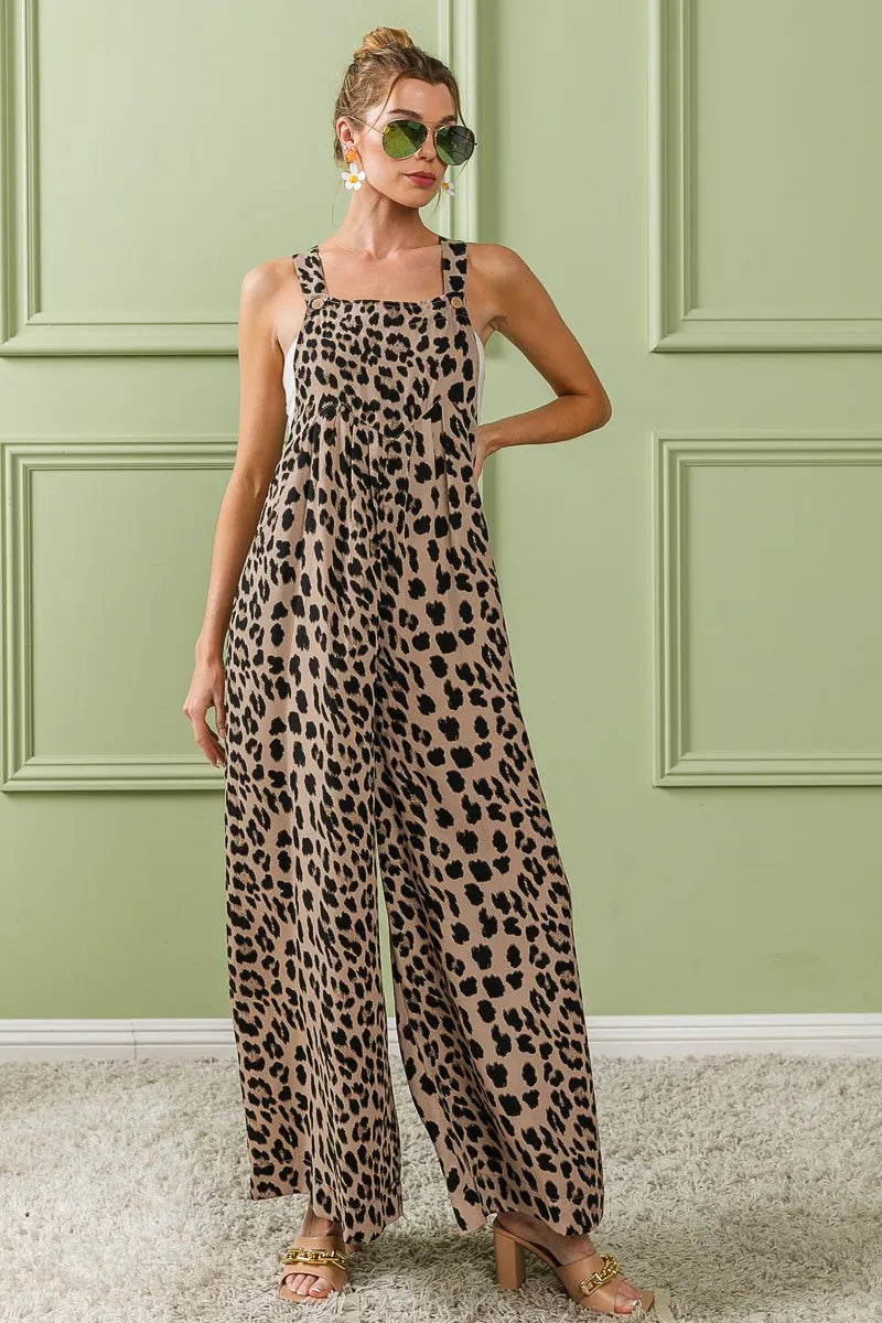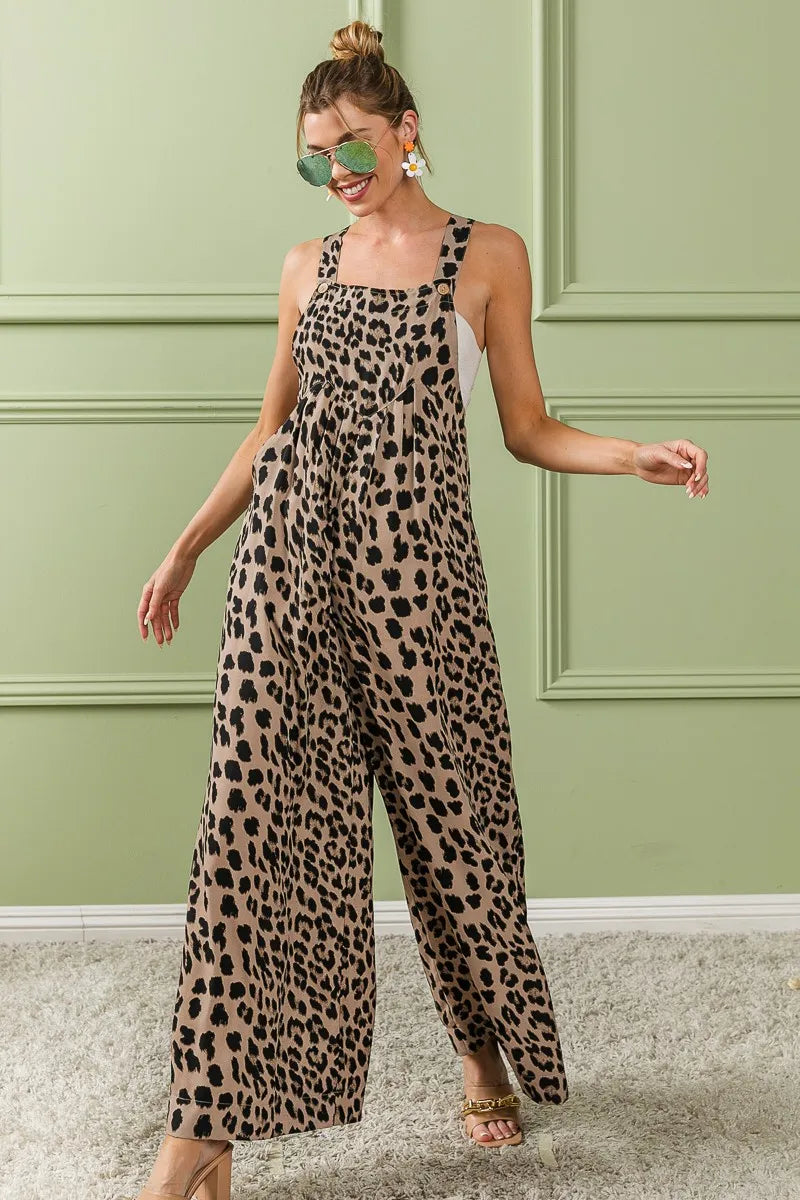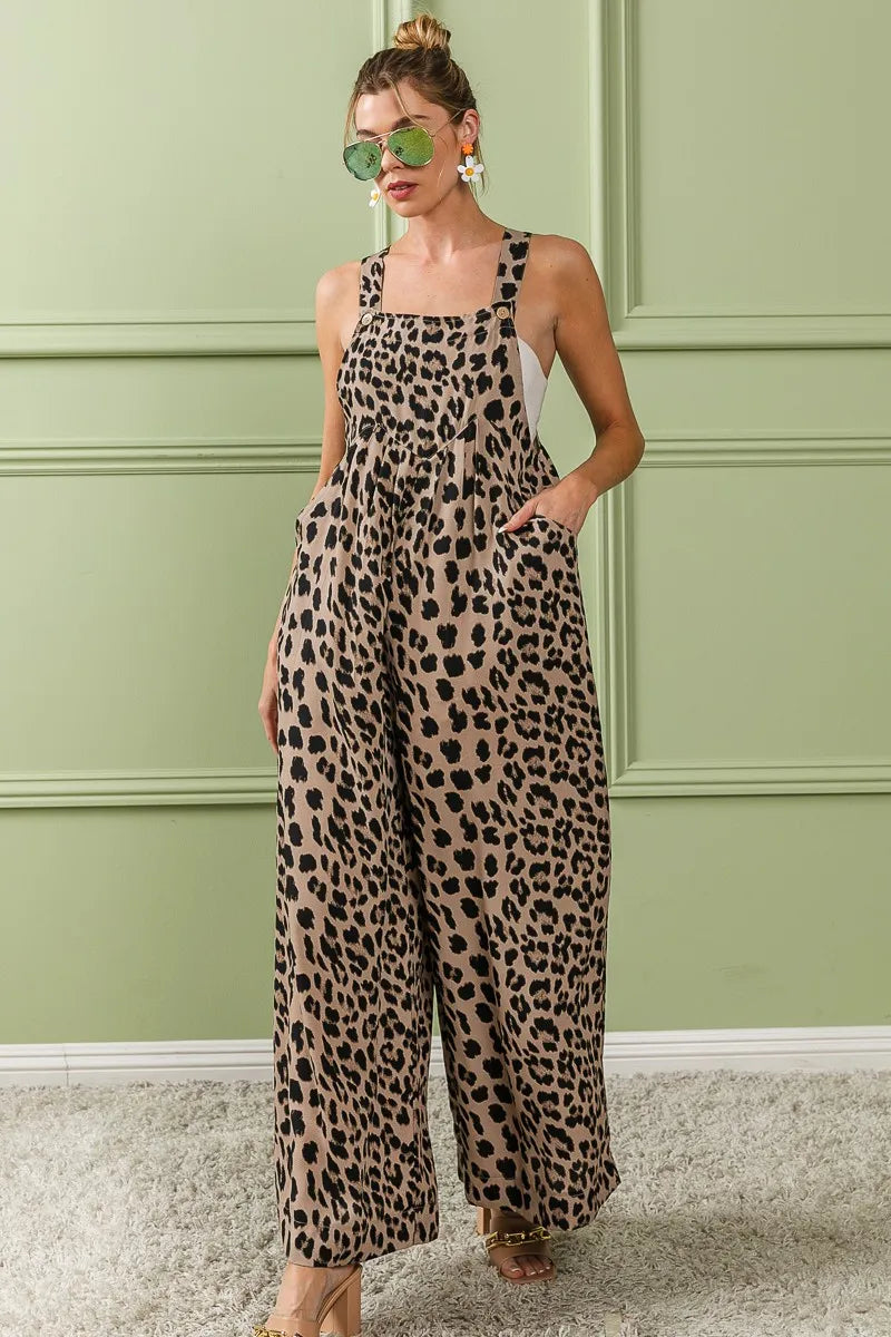 BiBi Leopard Print Wide Leg Overalls