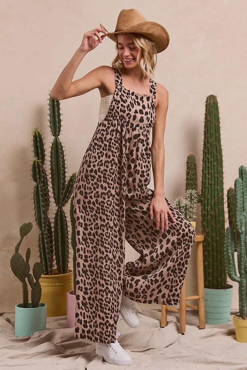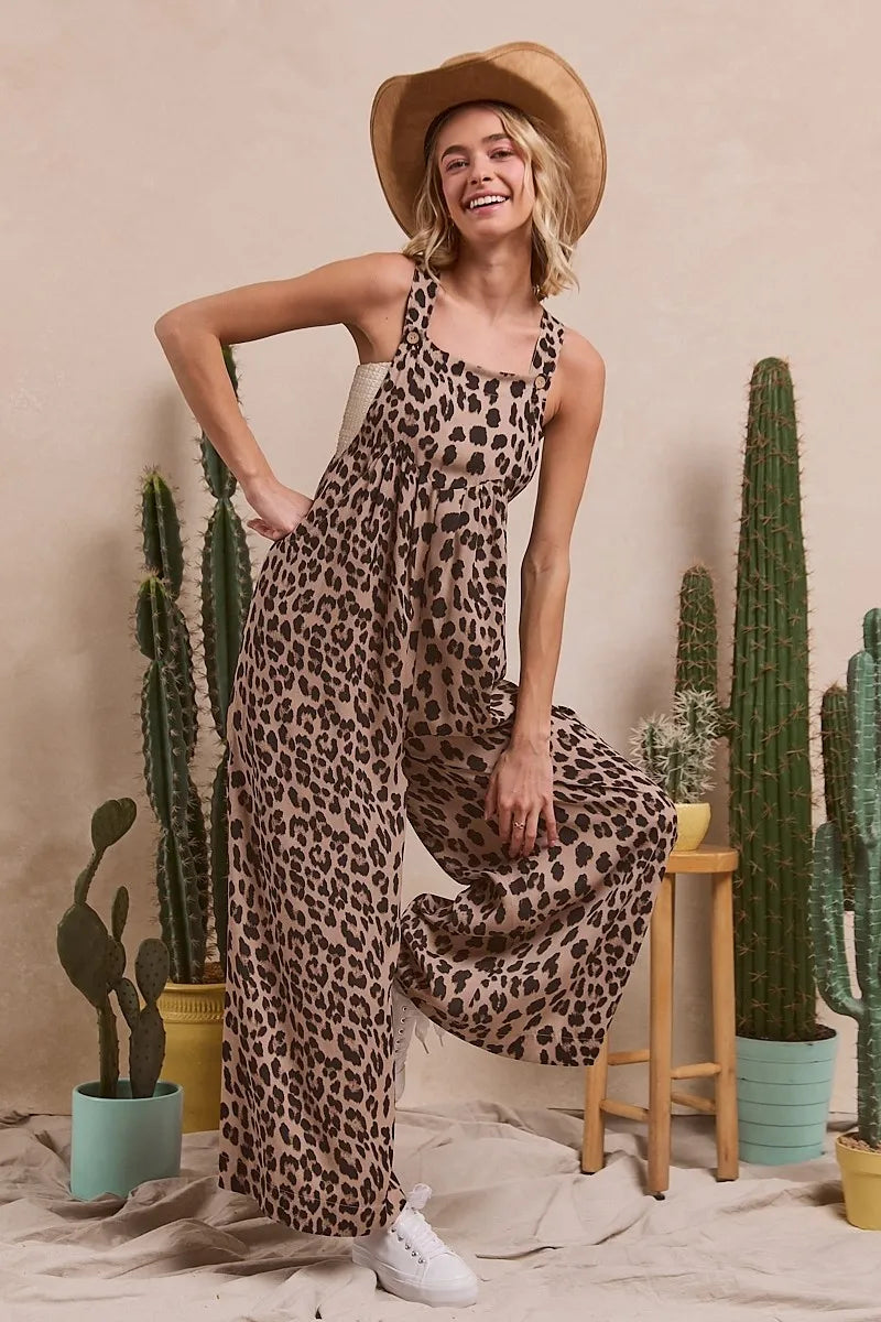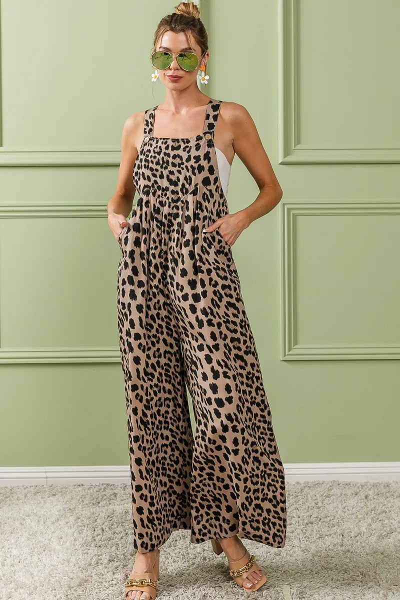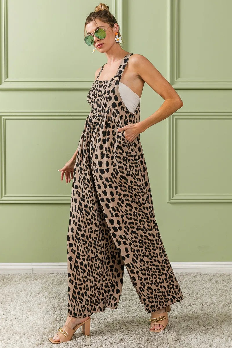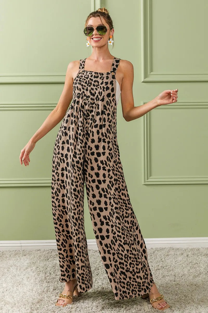 BiBi Leopard Print Wide Leg Overalls