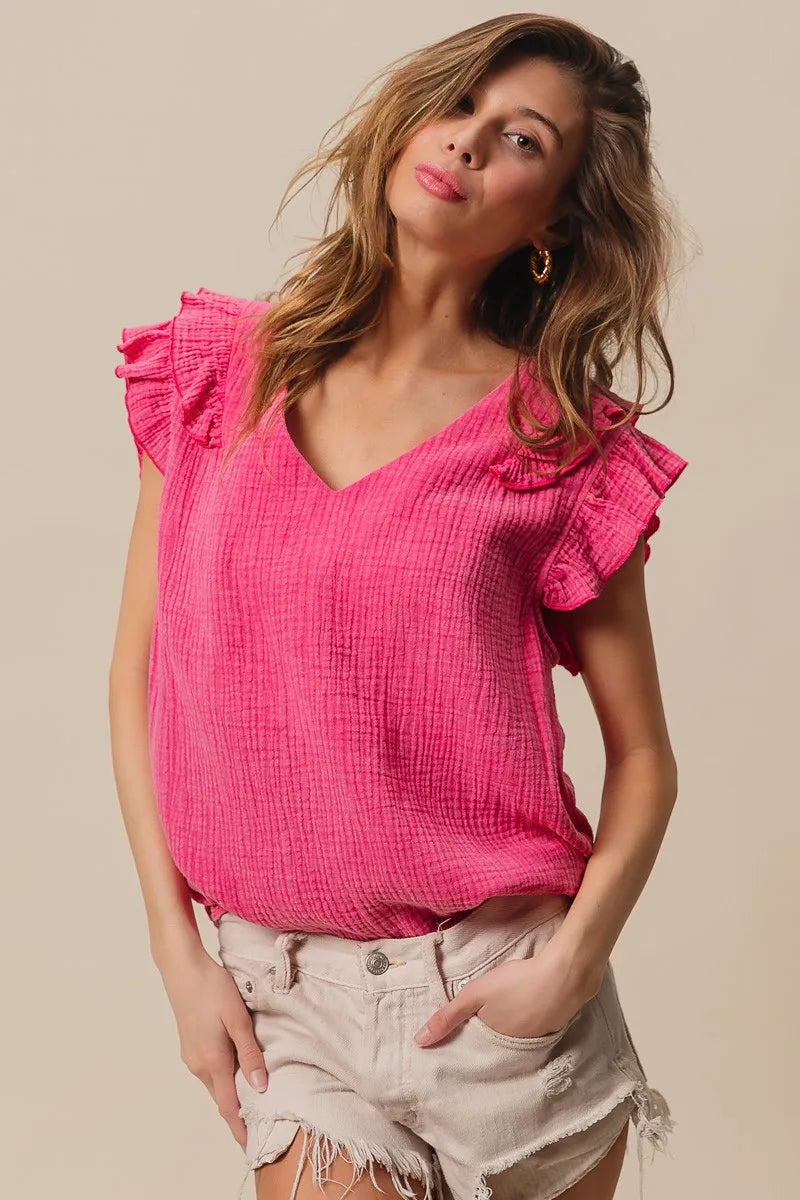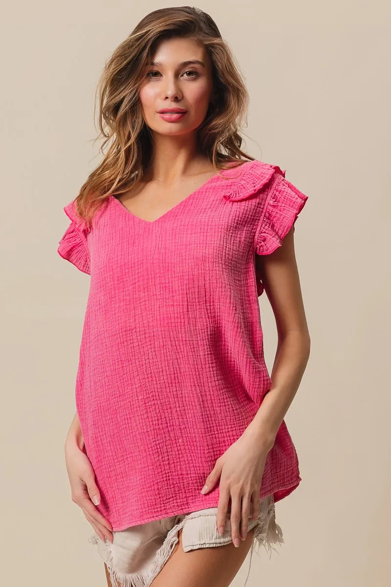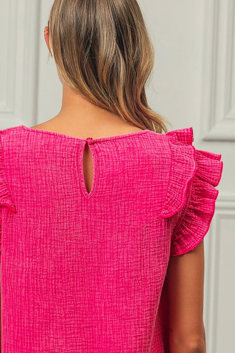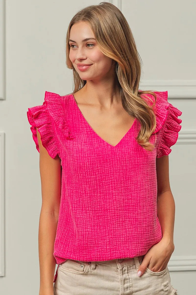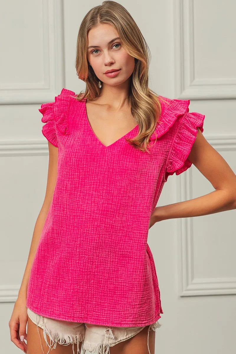 The Mineral Washed Crinkle Gauze Top offers a unique textured look with its crinkle gauze fabric and mineral washed finish. This top is perfect for a relaxed and bohemian style, with a breezy and comfortable feel. Ideal for casual outings or adding a touch of laid-back charm to your wardrobe.