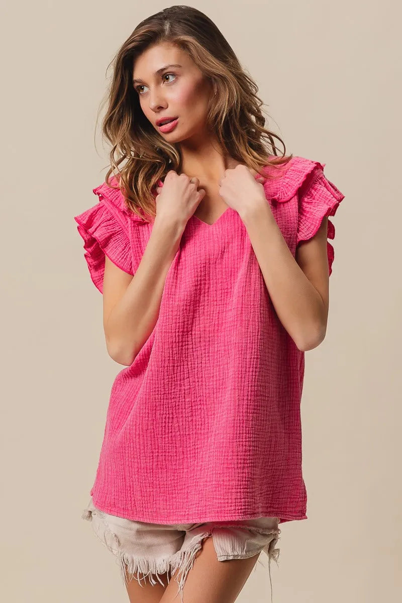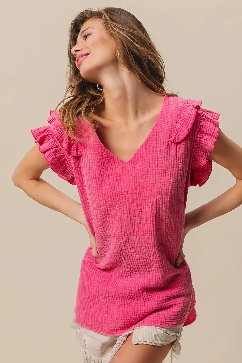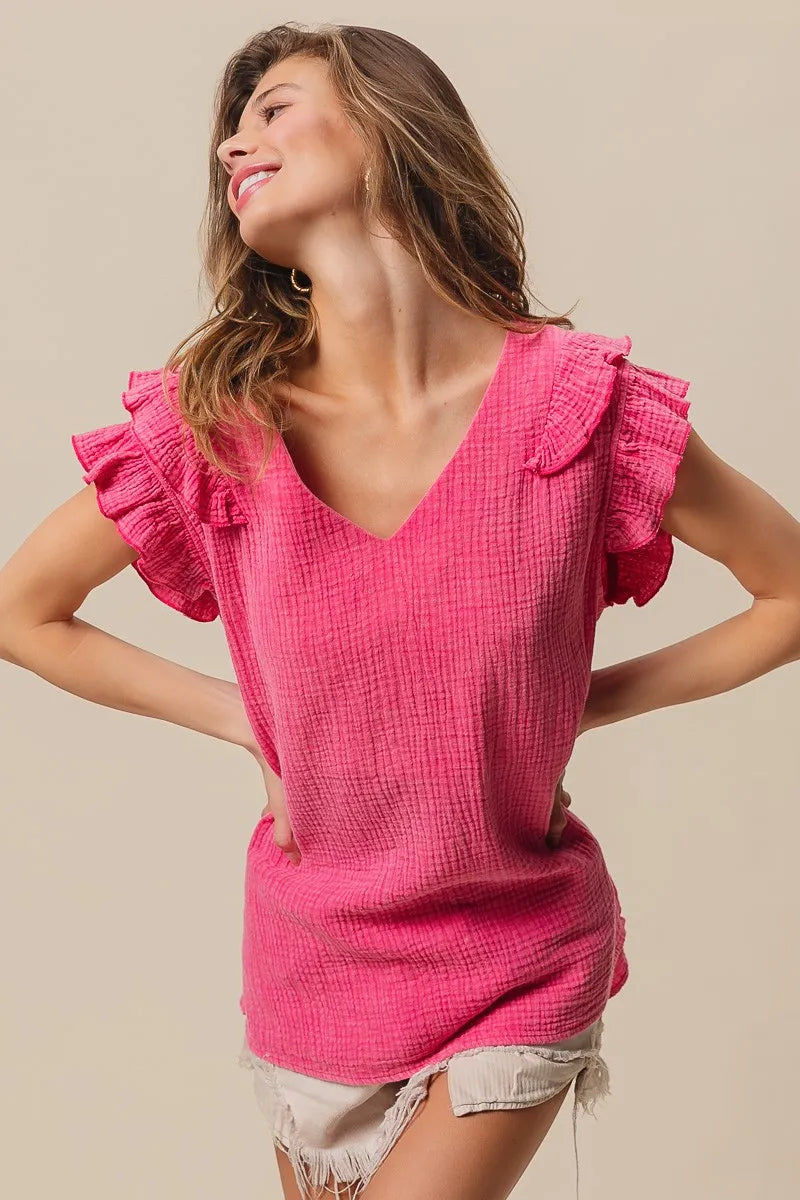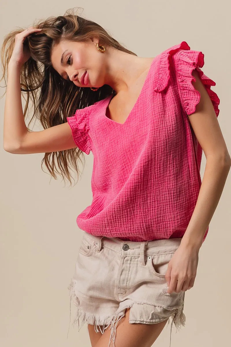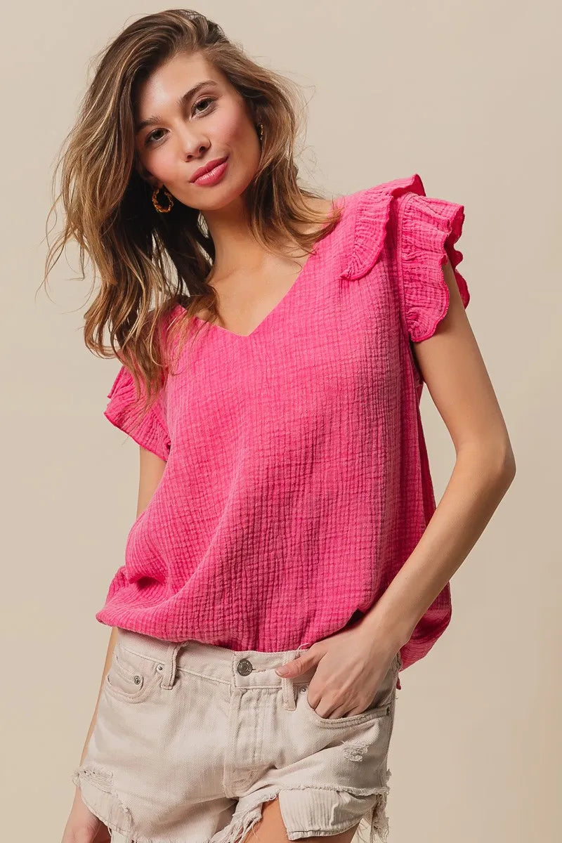 The Mineral Washed Crinkle Gauze Top offers a unique textured look with its crinkle gauze fabric and mineral washed finish. This top is perfect for a relaxed and bohemian style, with a breezy and comfortable feel. Ideal for casual outings or adding a touch of laid-back charm to your wardrobe.