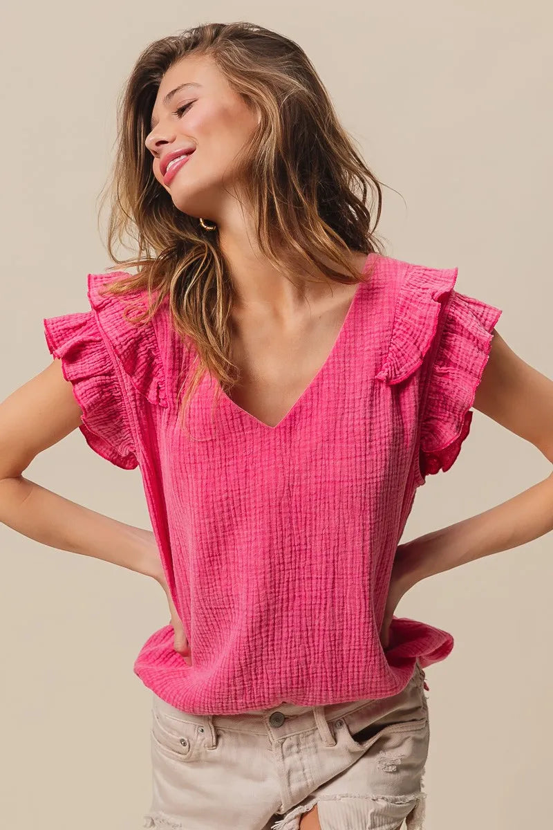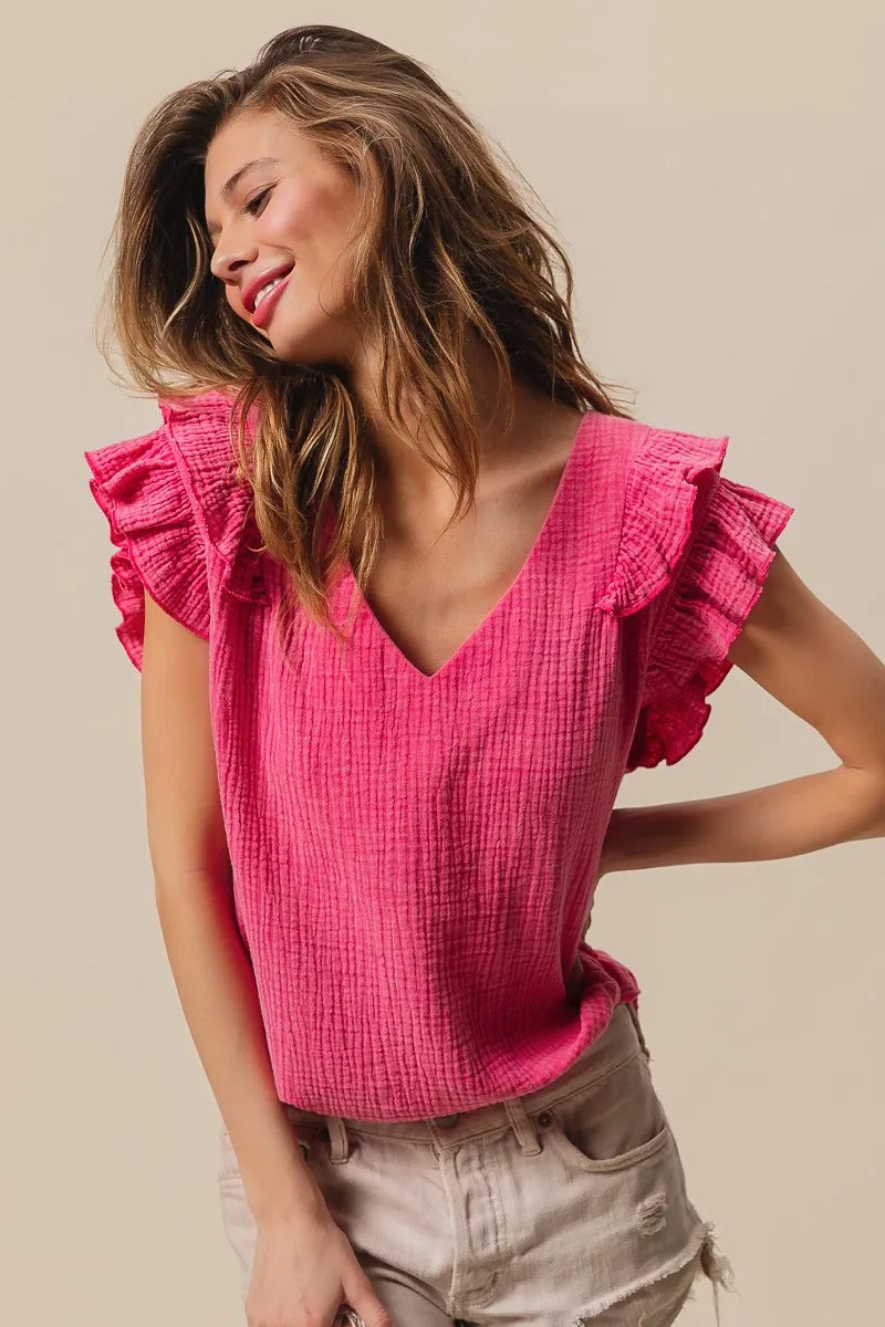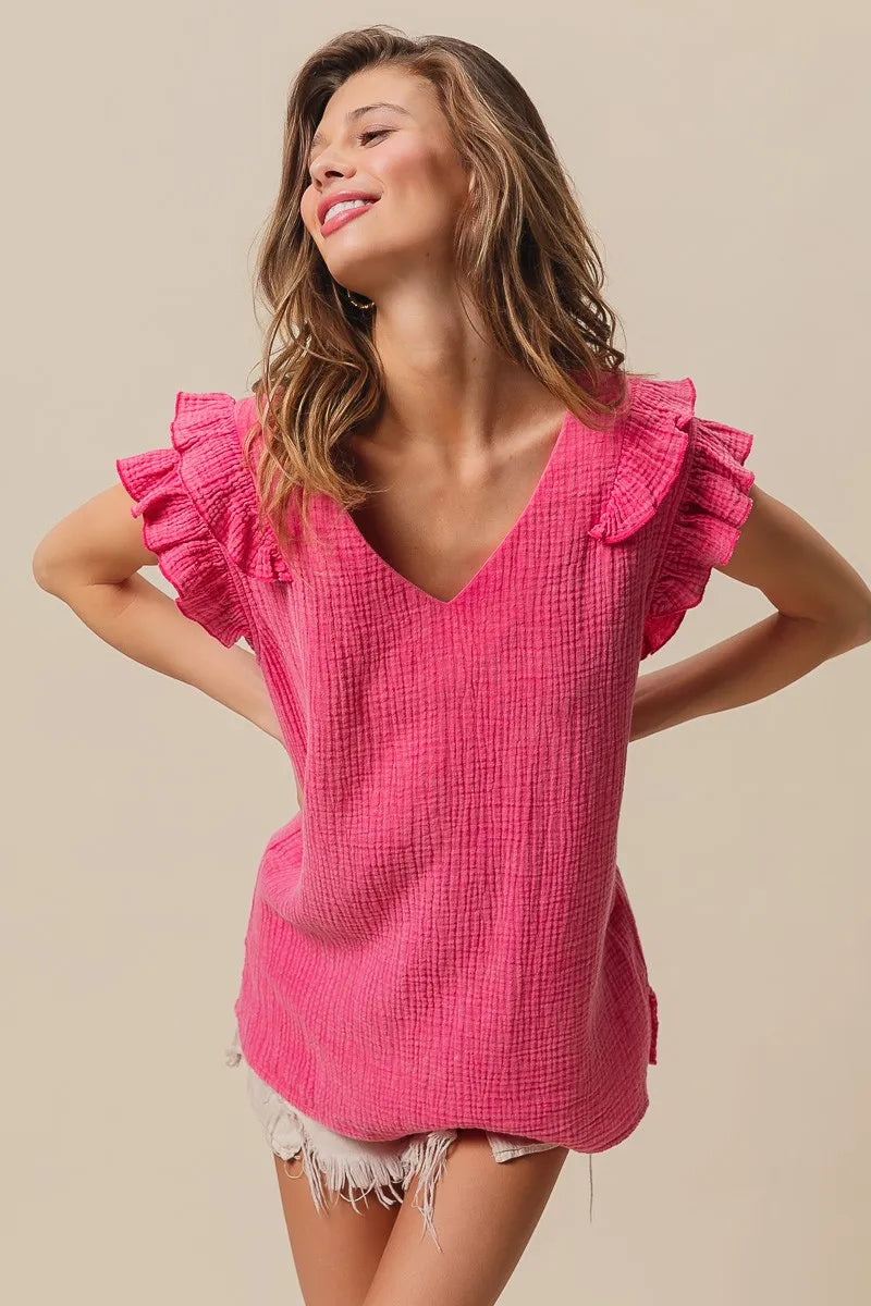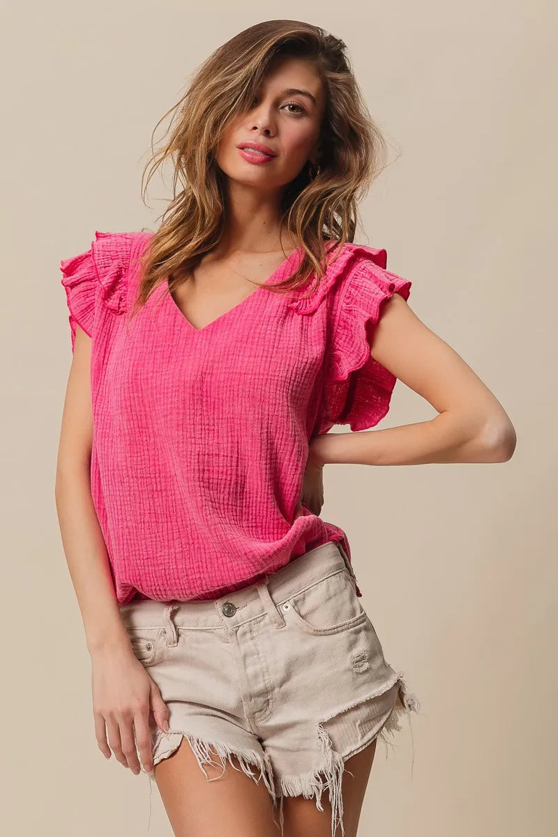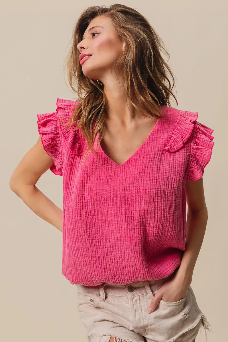 The Mineral Washed Crinkle Gauze Top offers a unique textured look with its crinkle gauze fabric and mineral washed finish. This top is perfect for a relaxed and bohemian style, with a breezy and comfortable feel. Ideal for casual outings or adding a touch of laid-back charm to your wardrobe.