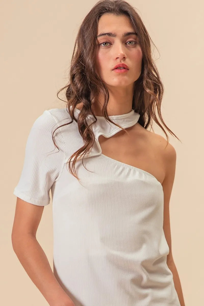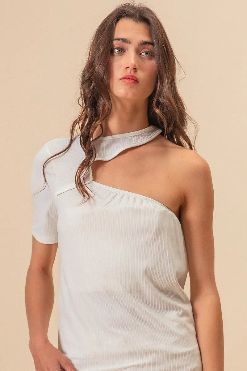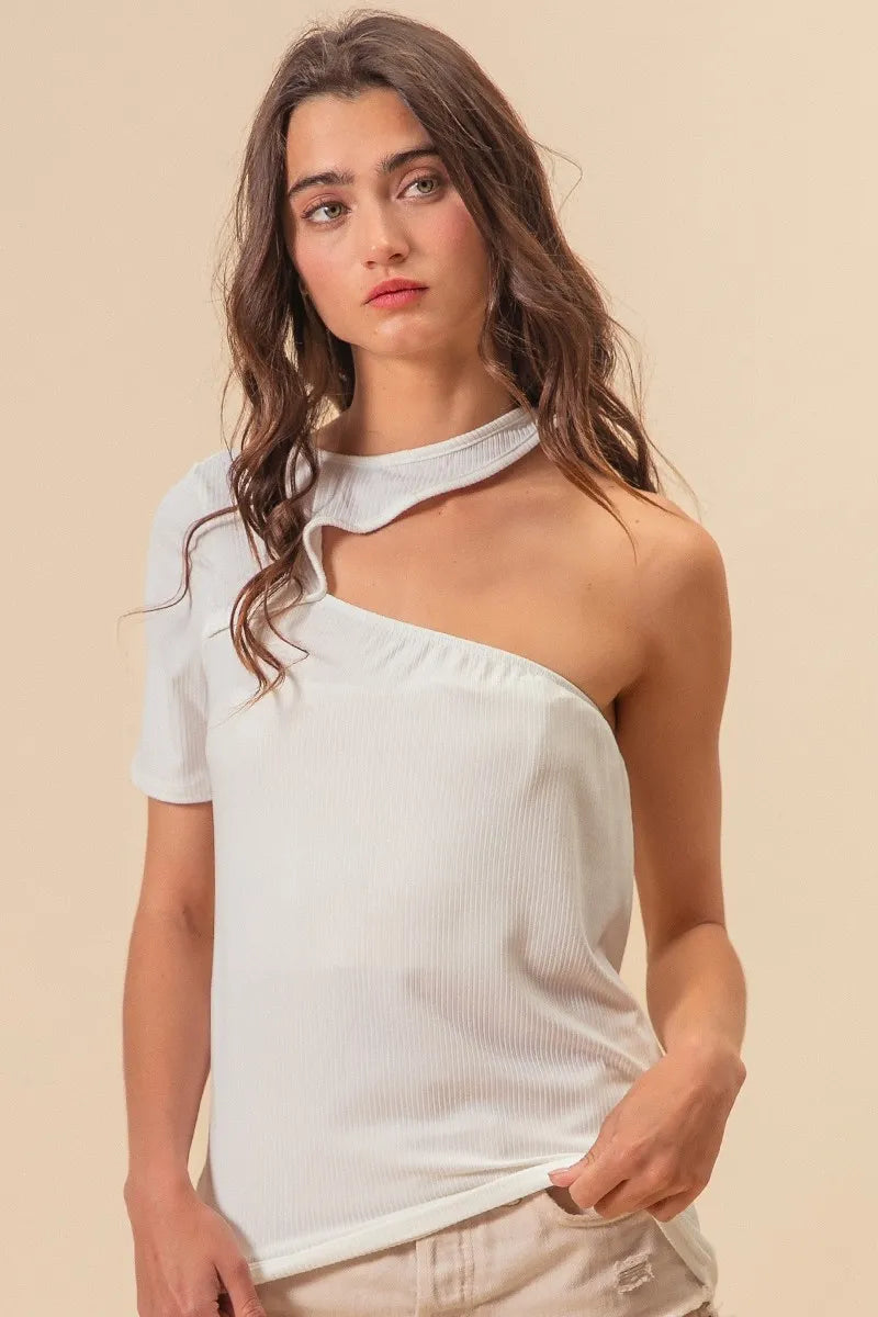 BiBi Soft Rib Knit with Cut Out One Shoulder Top