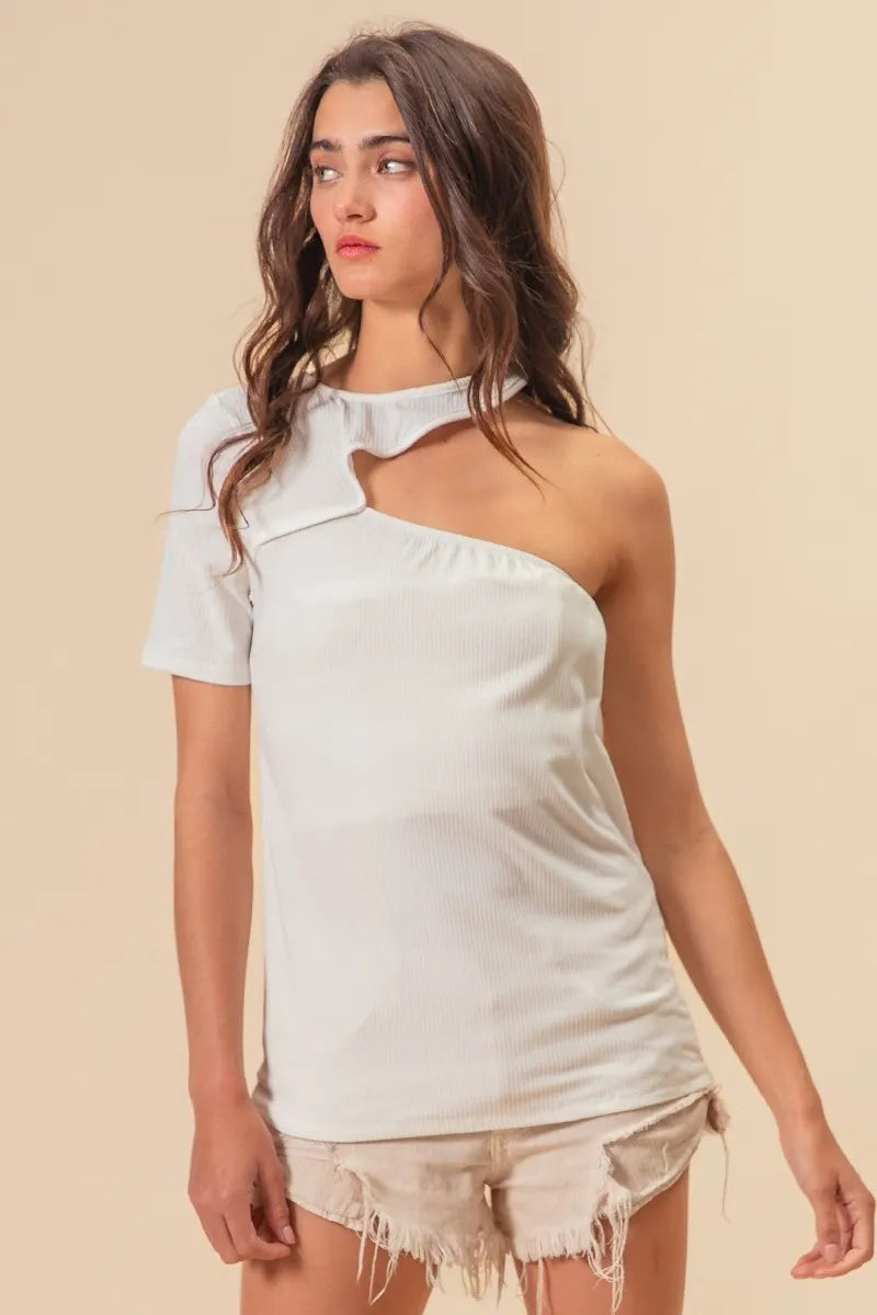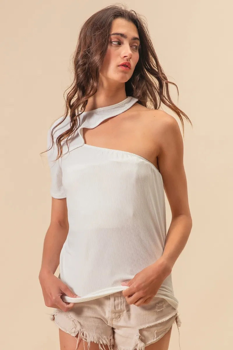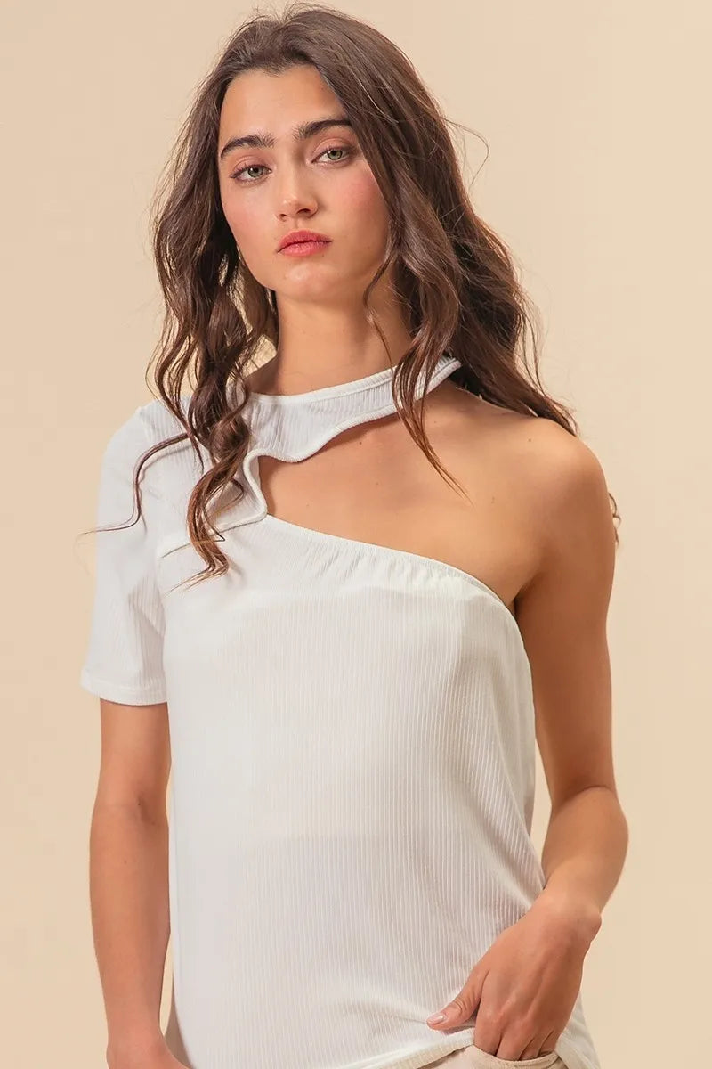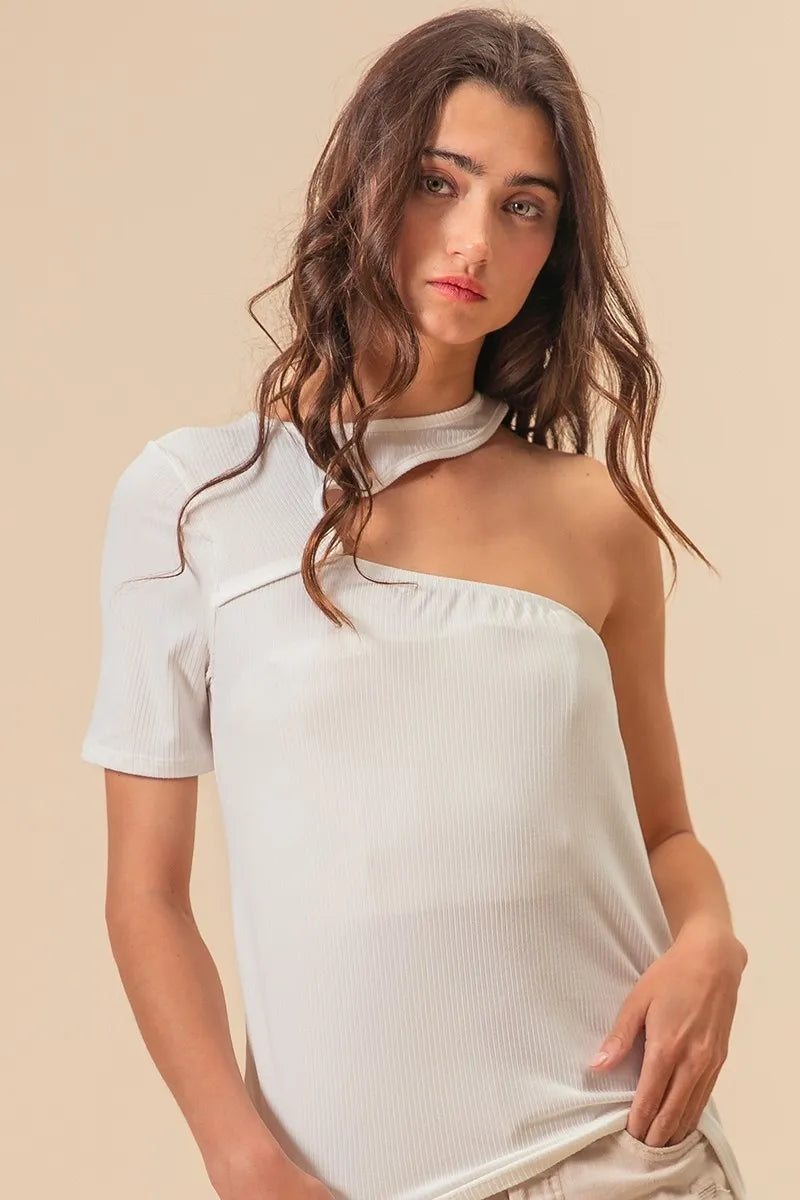 BiBi Soft Rib Knit with Cut Out One Shoulder Top