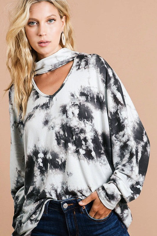 BiBi Tie Dye Cutout Batwing Sleeve Top