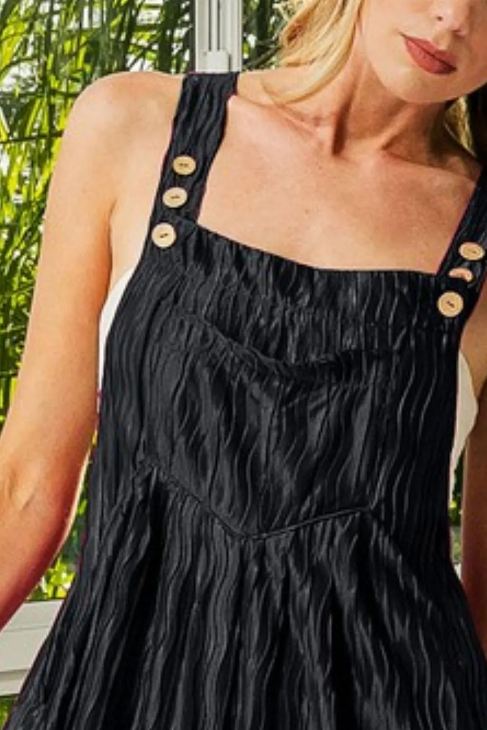 These shortalls feature wave pleats that add a unique and eye-catching detail to the design. The wide legs offer a trendy and comfortable fit, perfect for a relaxed yet stylish look. Ideal for warm weather and casual outings, these shortalls can be paired with a variety of tops for a chic and effortless outfit.