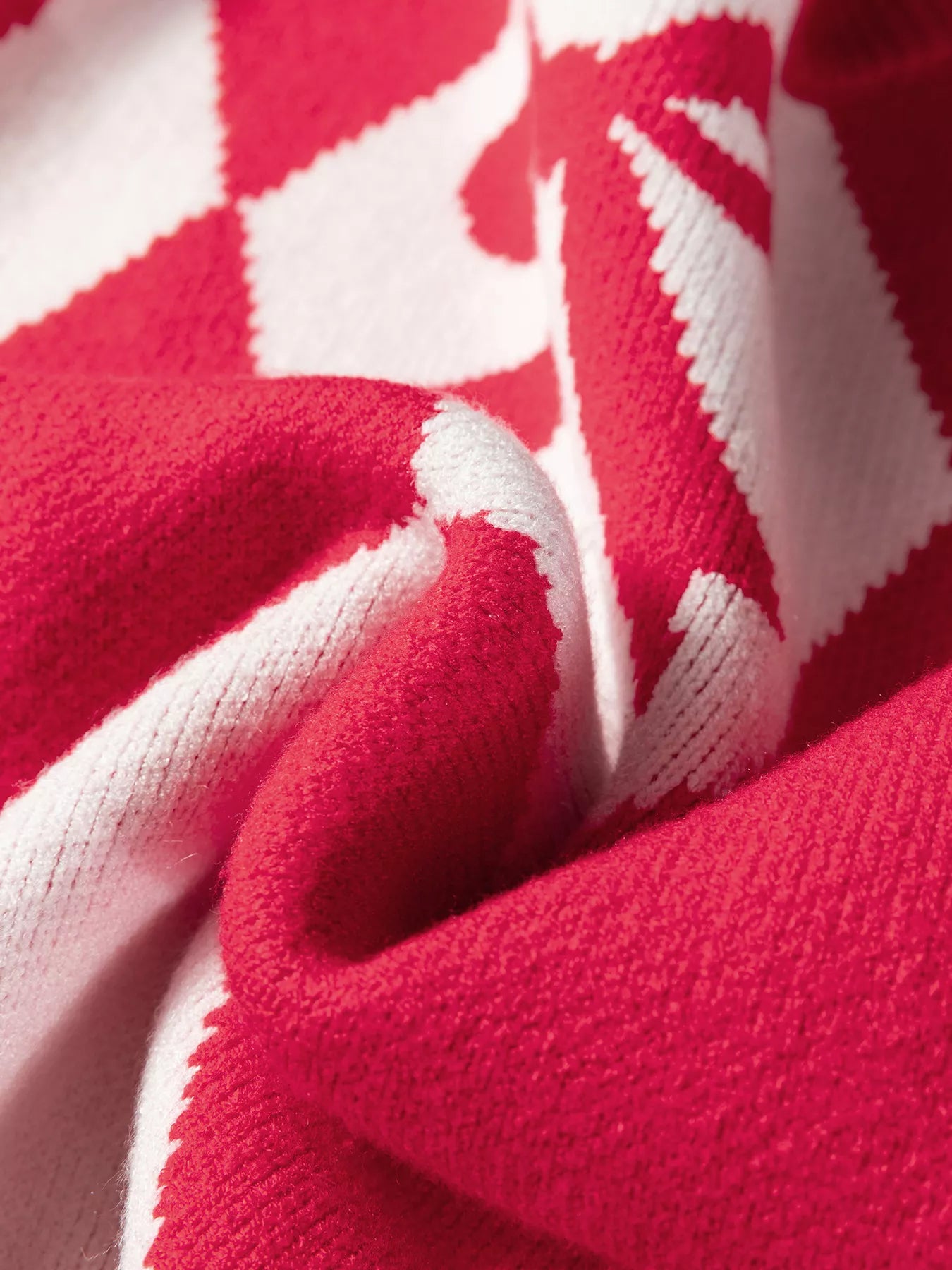 Bow Print 2-Tone Rhombus Knit Loose Sweater