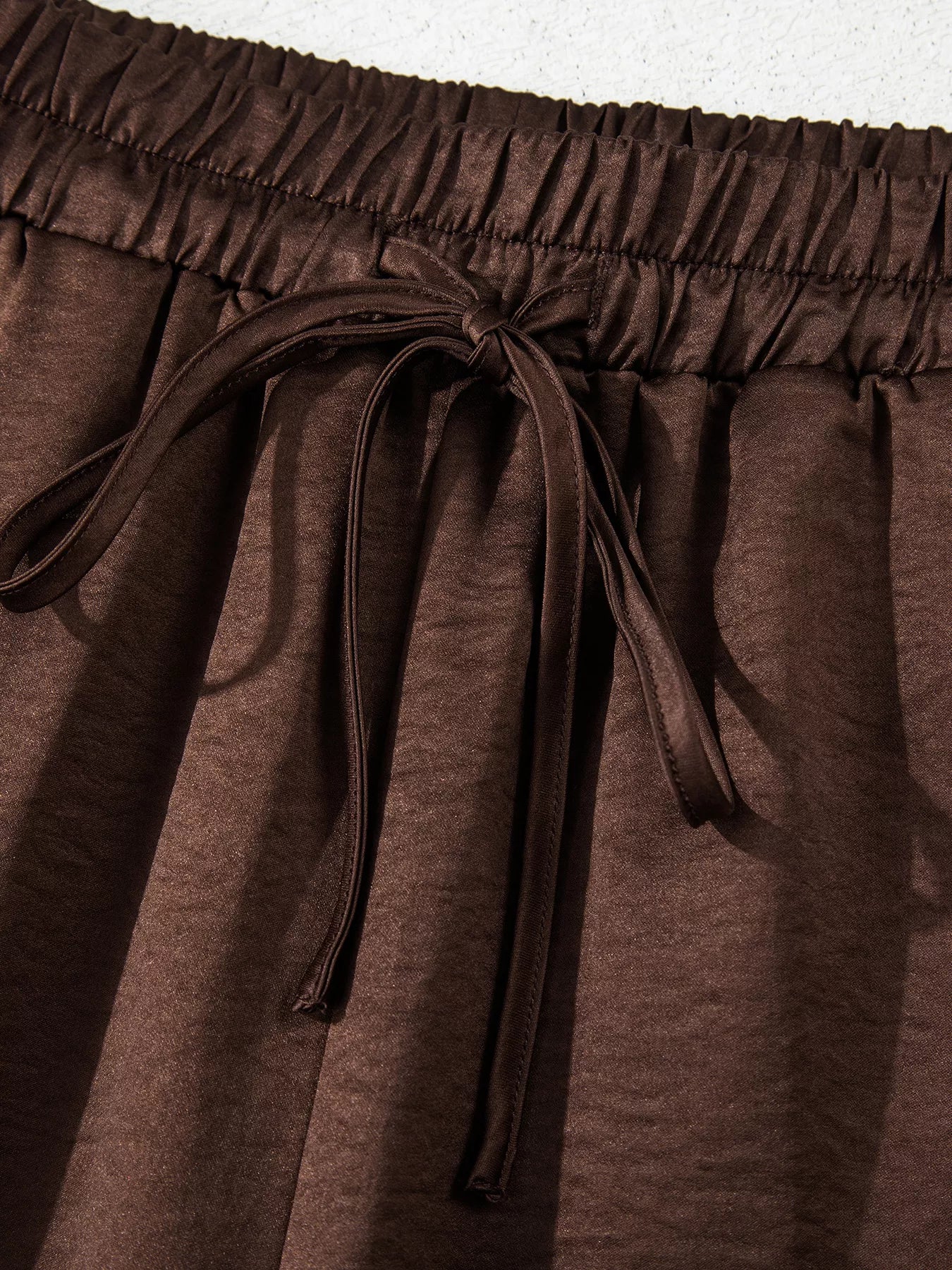 Braided V Neck Long Sleeve Loose Top and Drawstring High Waist Pants 2pcs Outfit