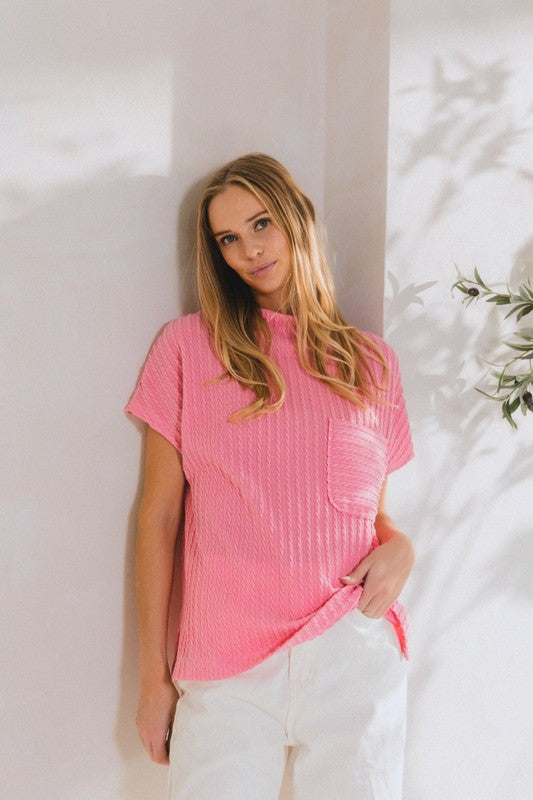 The Texture Mock Neck Short Sleeve Knit Top is a versatile and chic piece for your wardrobe. With its mock neck design, short sleeves, and textured knit fabric, this top offers a stylish and sophisticated look. The unique texture adds visual interest and elevates the overall aesthetic of the top. Perfect for layering or wearing on its own, this top is a versatile staple that can be dressed up or down for various occasions.