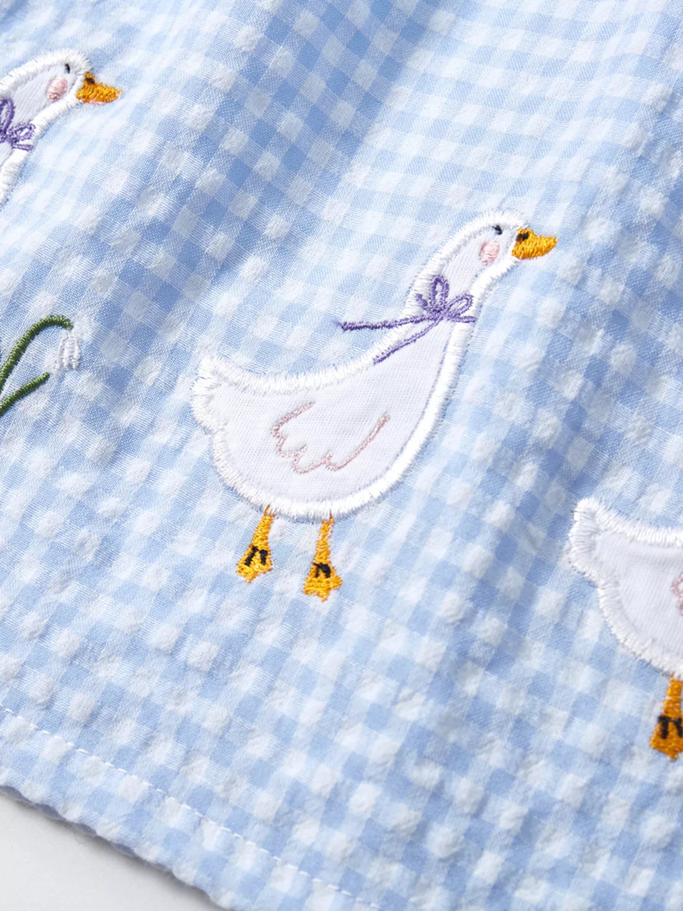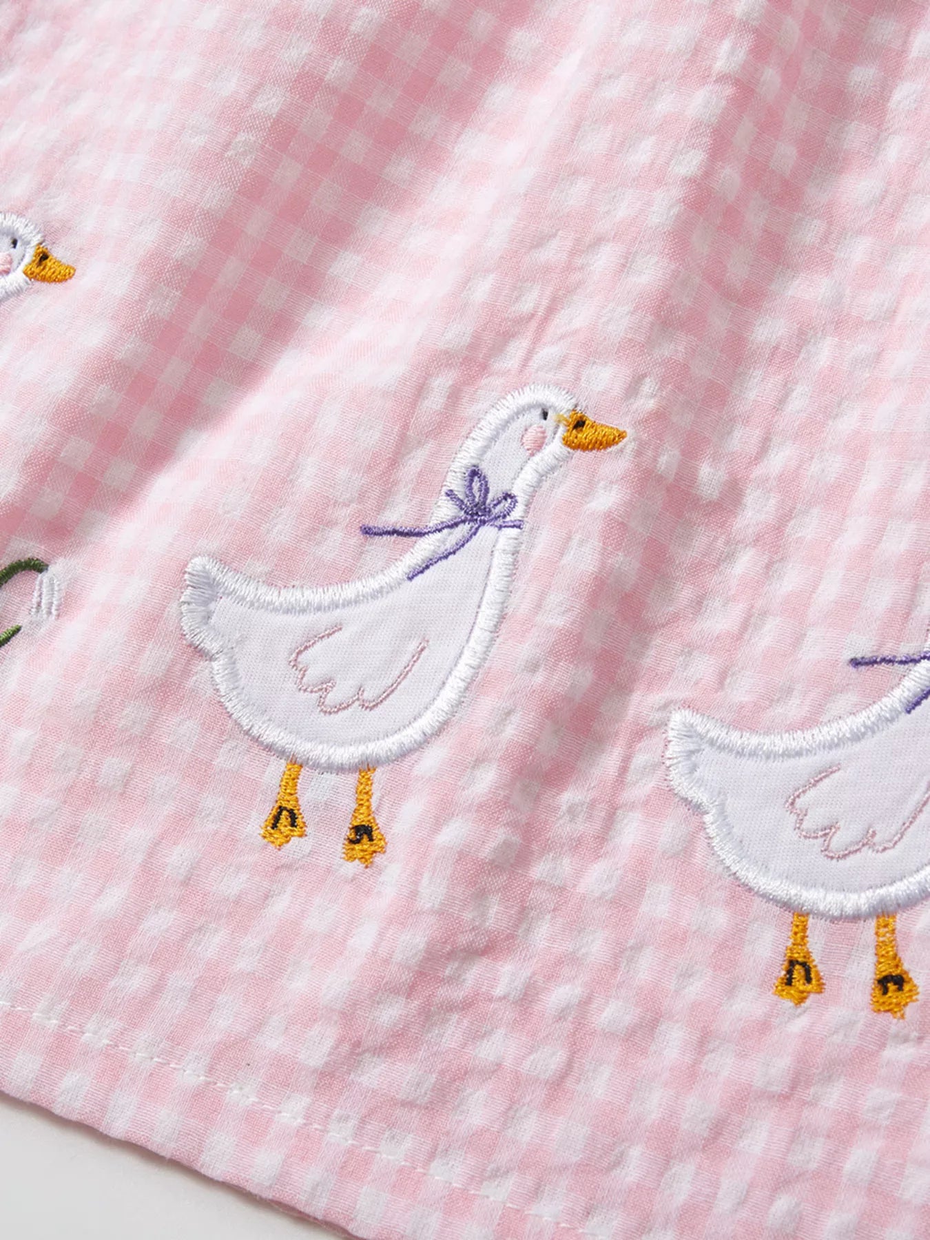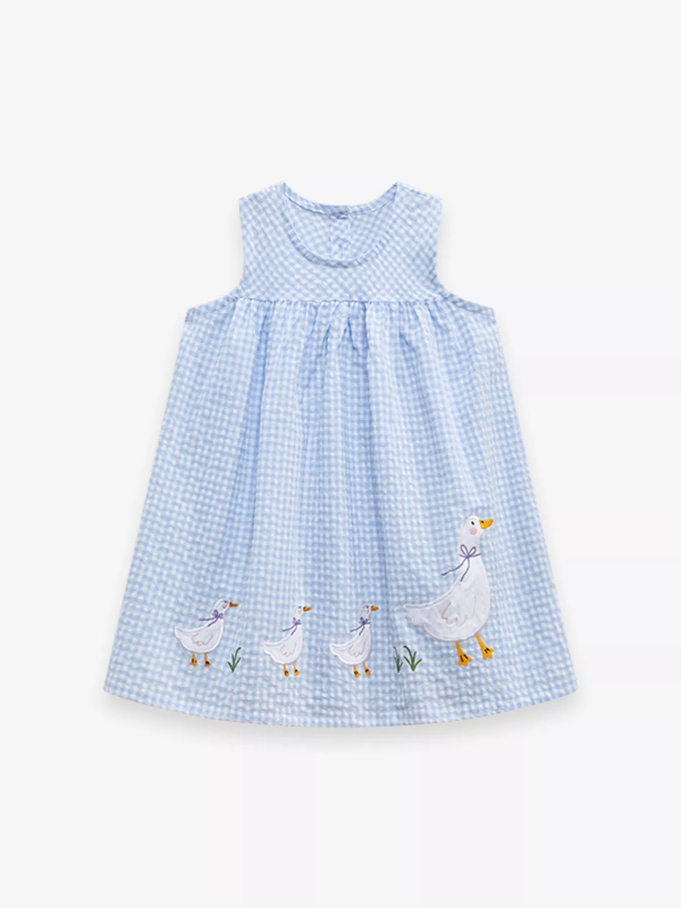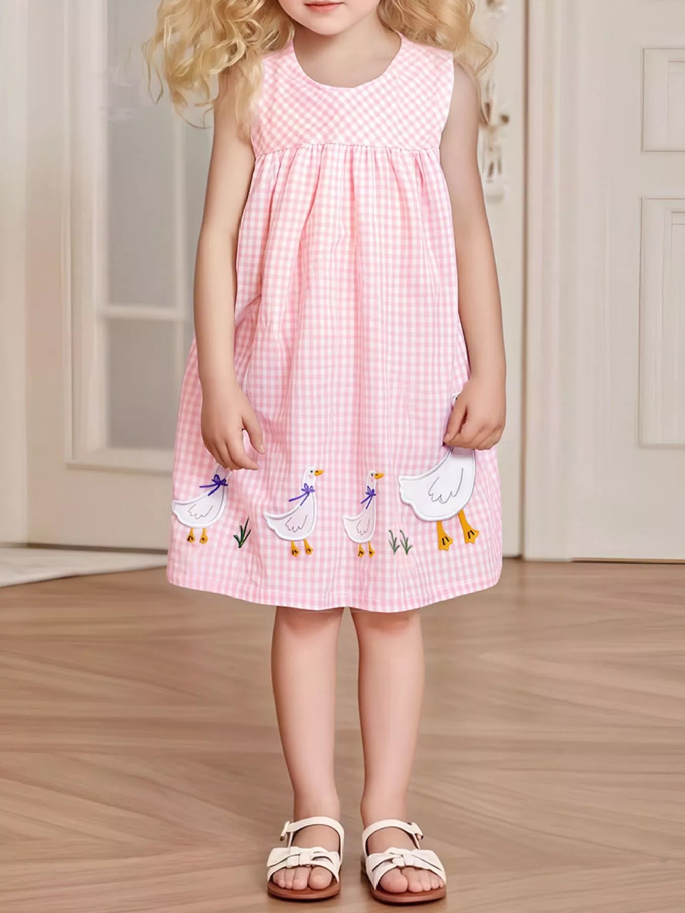 Children's Gingham Goose Embroidered Sleeveless Dress