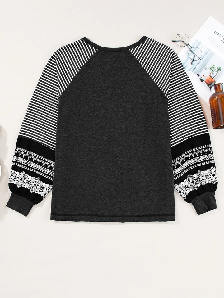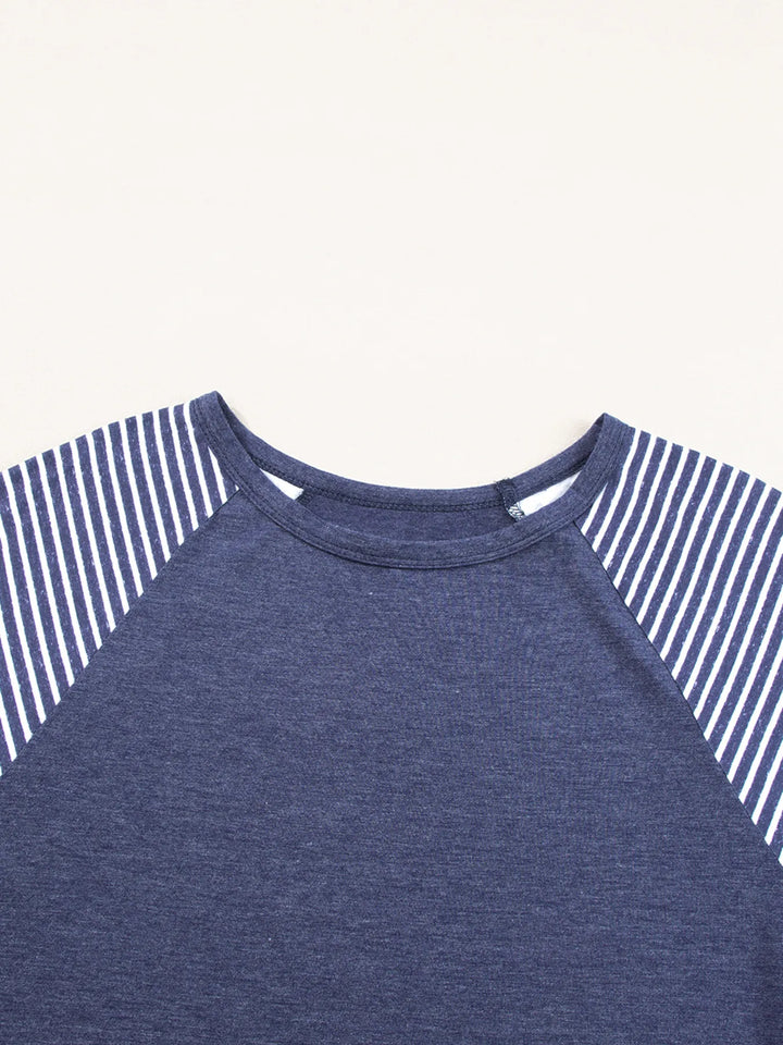 Contrast Print Striped Raglan Long Sleeve Loose Top