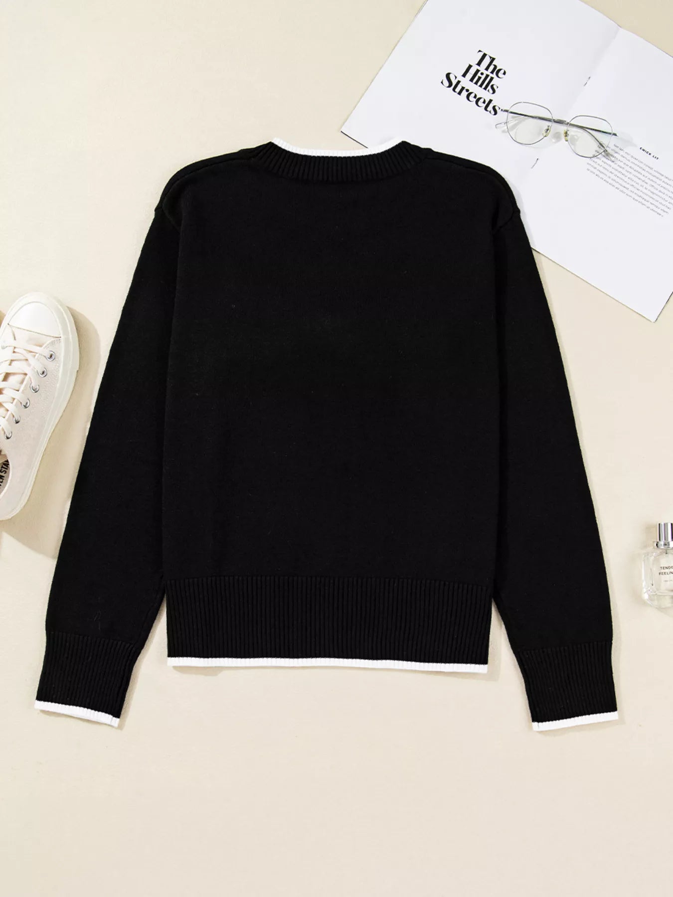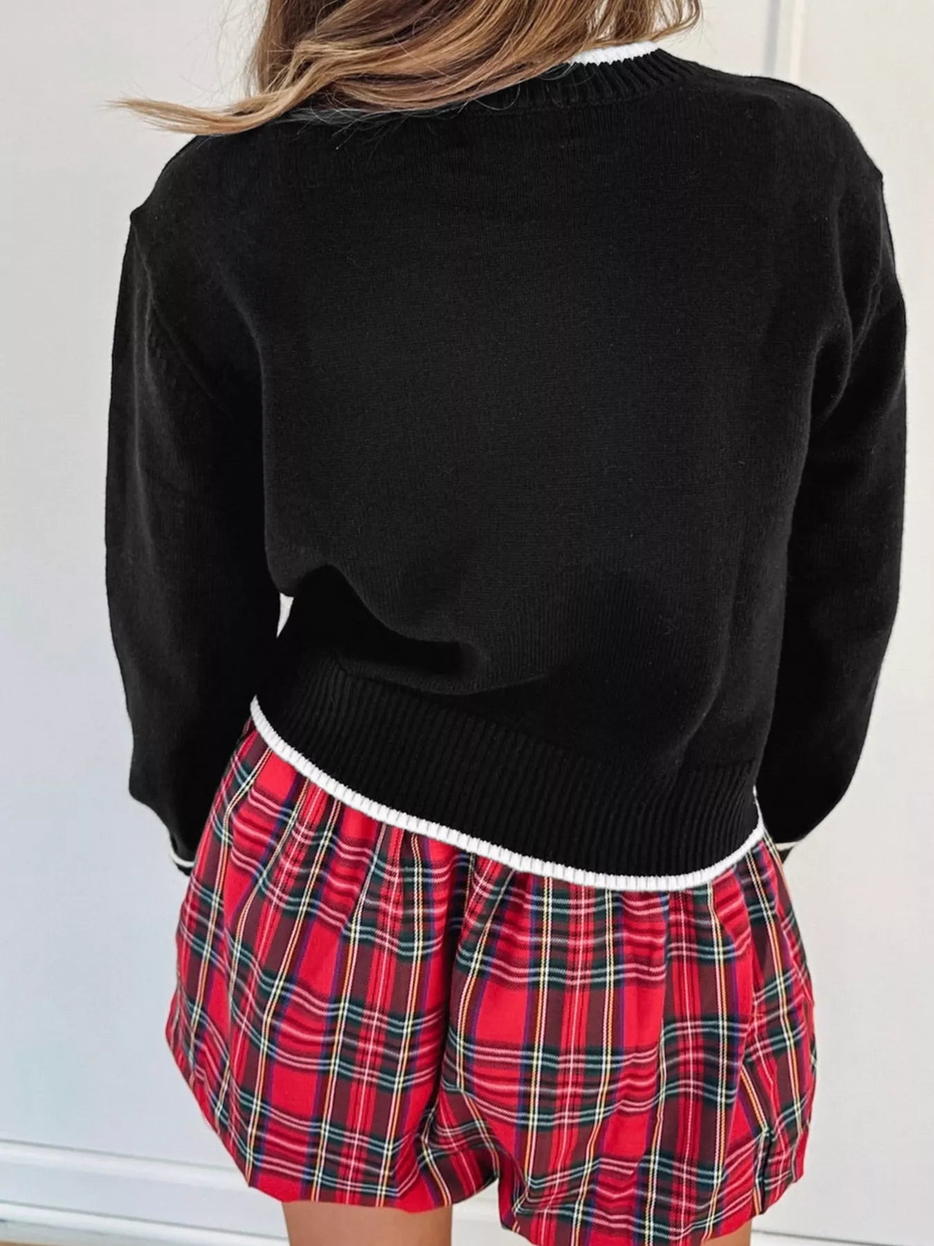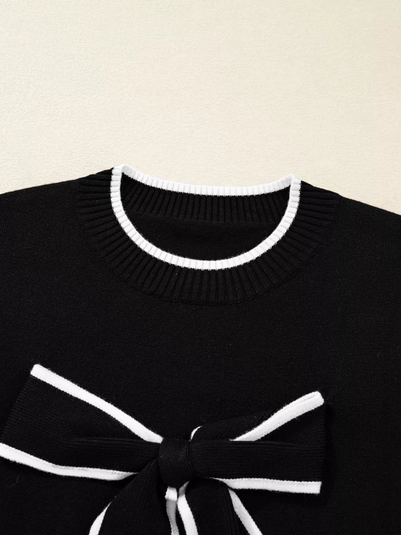 Contrast Trim Bow Accent Holiday Cropped Sweater