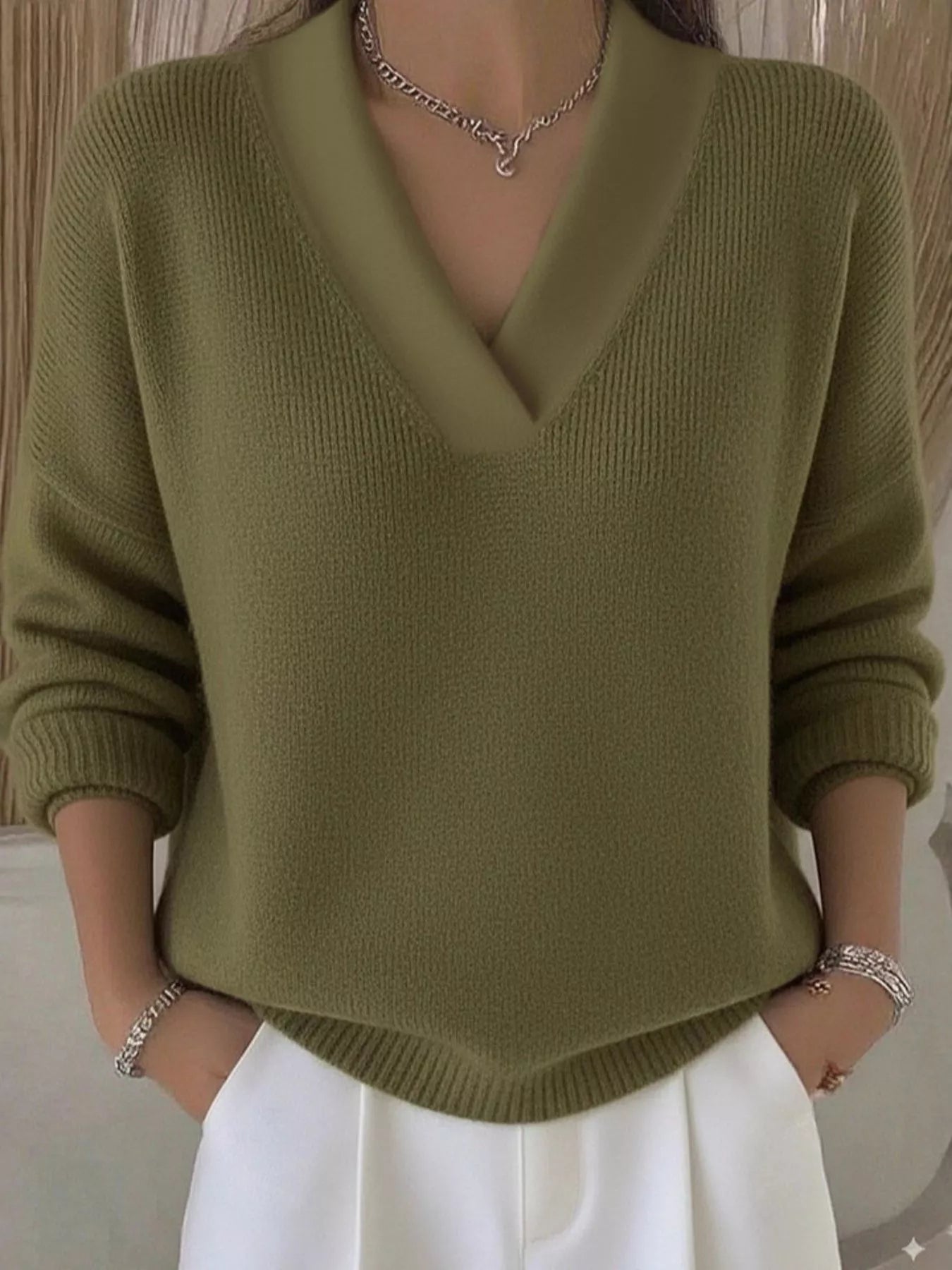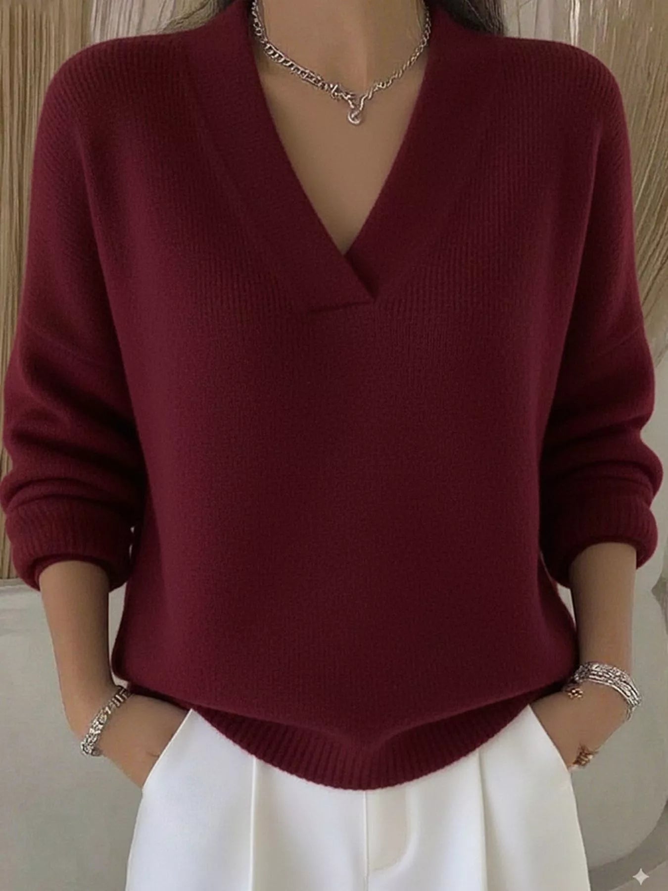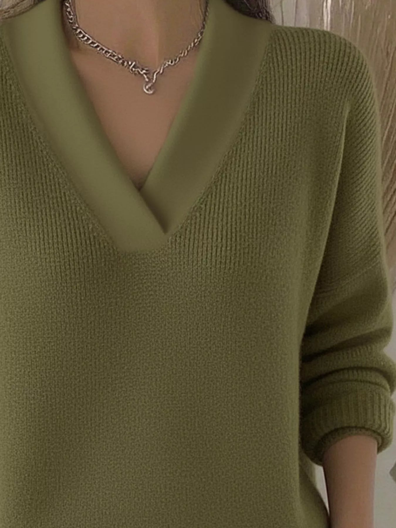 Full Size V-Neck Dropped Shoulder Sweater Plus Size