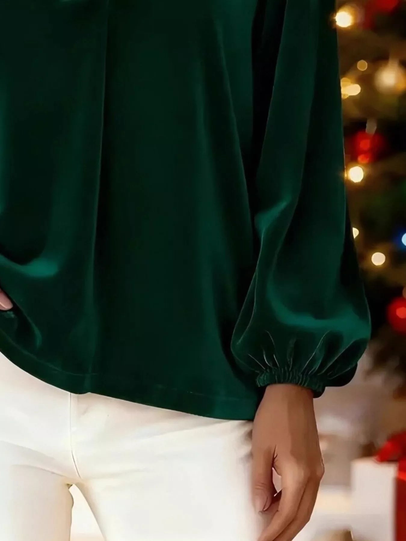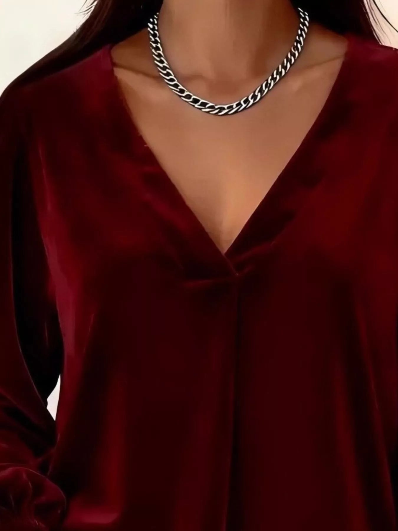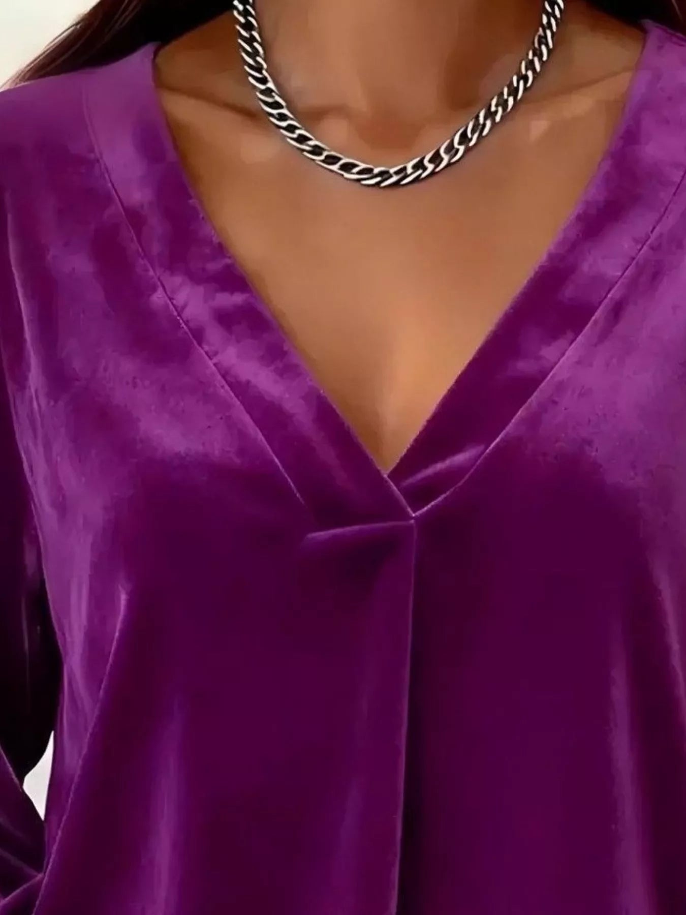Full Size Velvet V-Neck Balloon Sleeve Blouse Plus Size