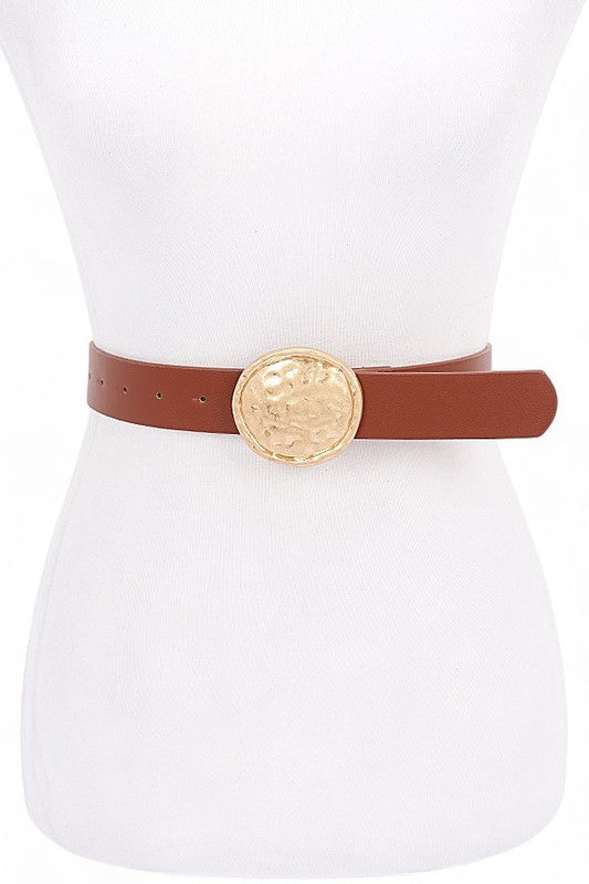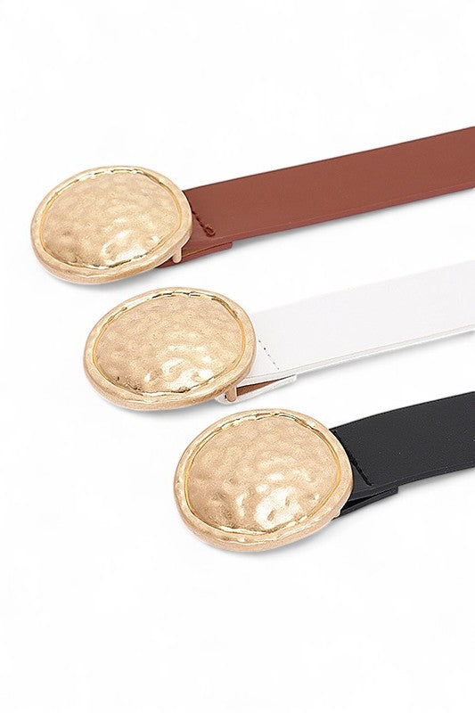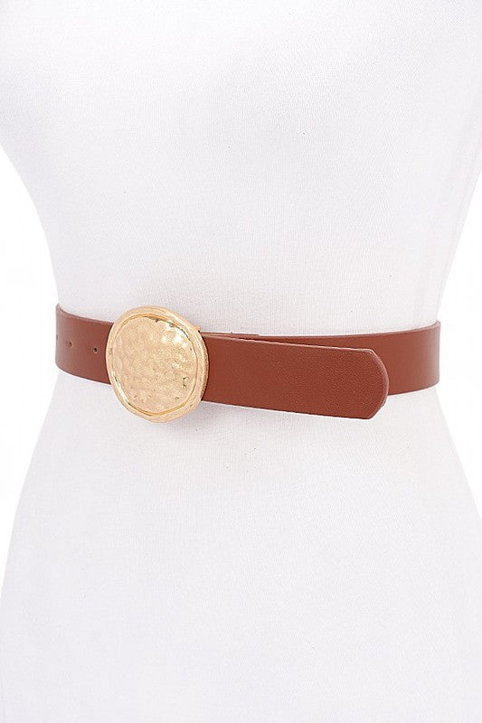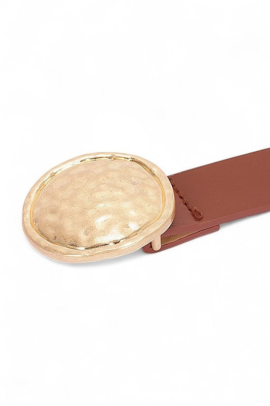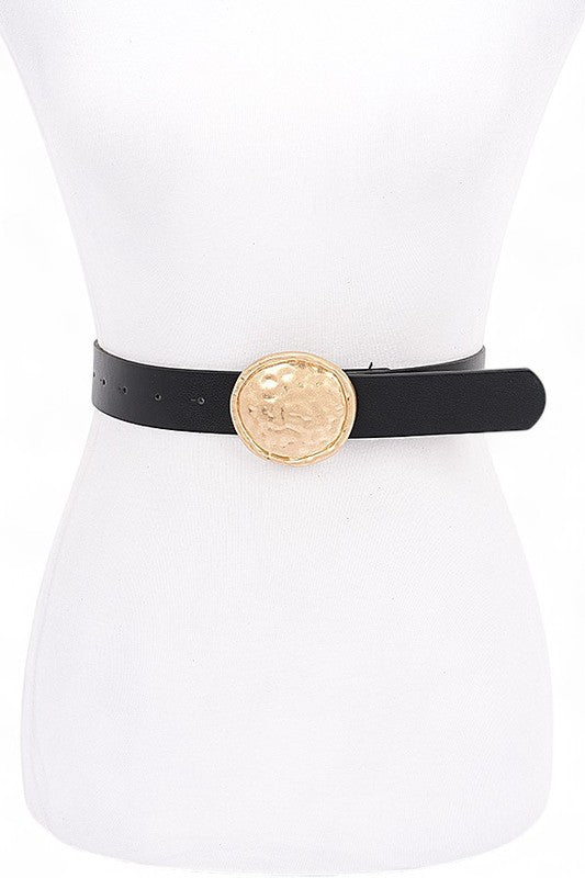 Hammered Oval Buckle Skinny Fashion Belt