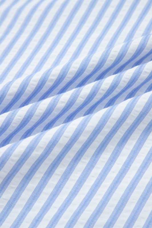 Transform your wardrobe with this charming blouse that blends classic and contemporary style. The vertical stripes are beautifully interrupted by leopard patchwork accents and playful ricrac trim, creating a look that's both fun and fashion-forward. With its crisp shirt collar and short puff sleeves, this piece strikes the perfect balance between polished and casual. Dress it down with your favorite jeans for weekend vibes or pair it with shorts for an effortlessly chic ensemble that turns heads wherever you go. Polyester/Cotton
