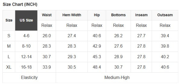 • XL: (Waist), (Hips), (Inseam), (Length)
