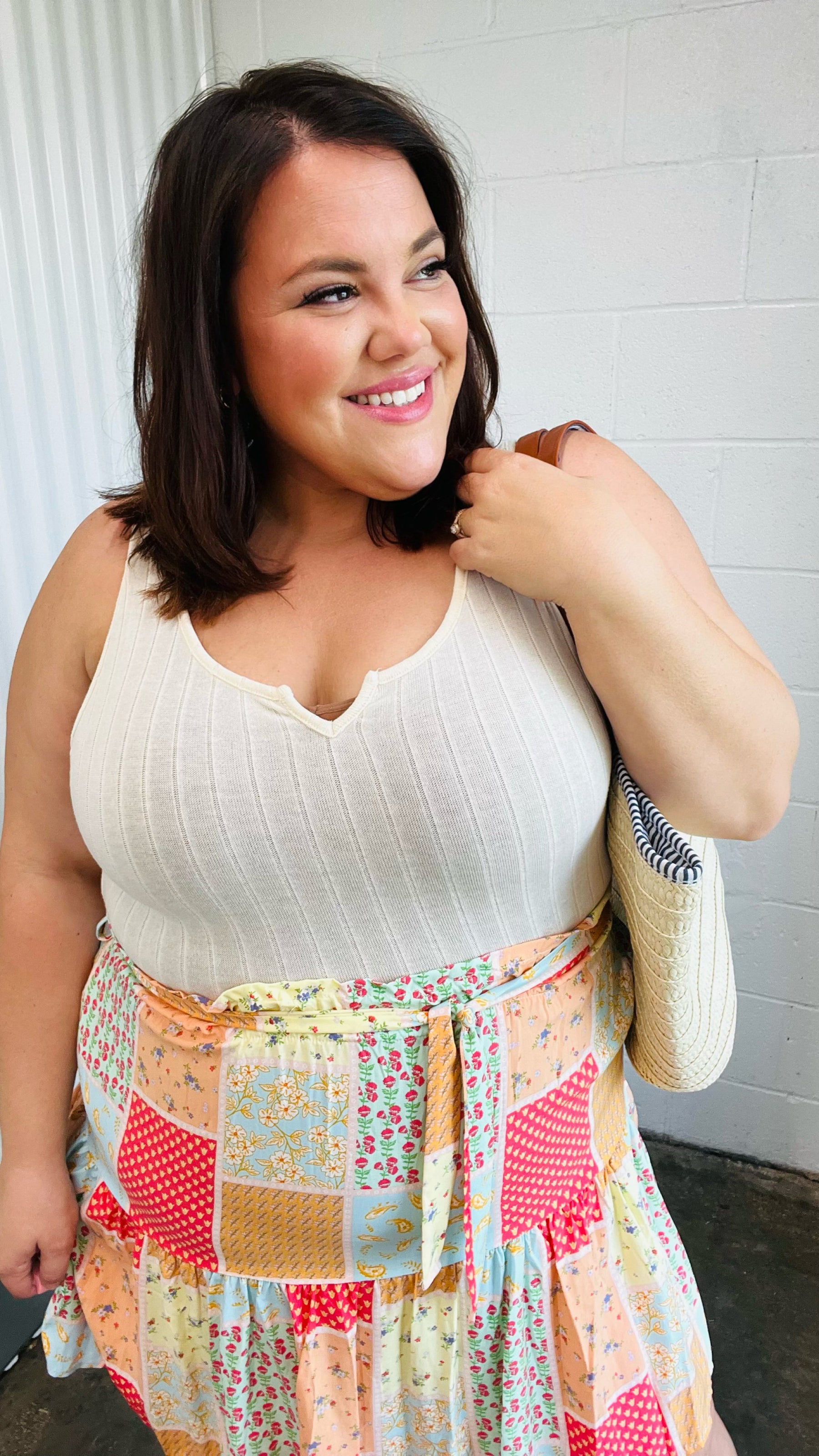 Make a romantic statement with this cream rib notched yoke dress featuring a Twofer design and an elastic frill waist. With side pockets and a ruffle hemline, pair with sandals, flats or heels for a stunning look.