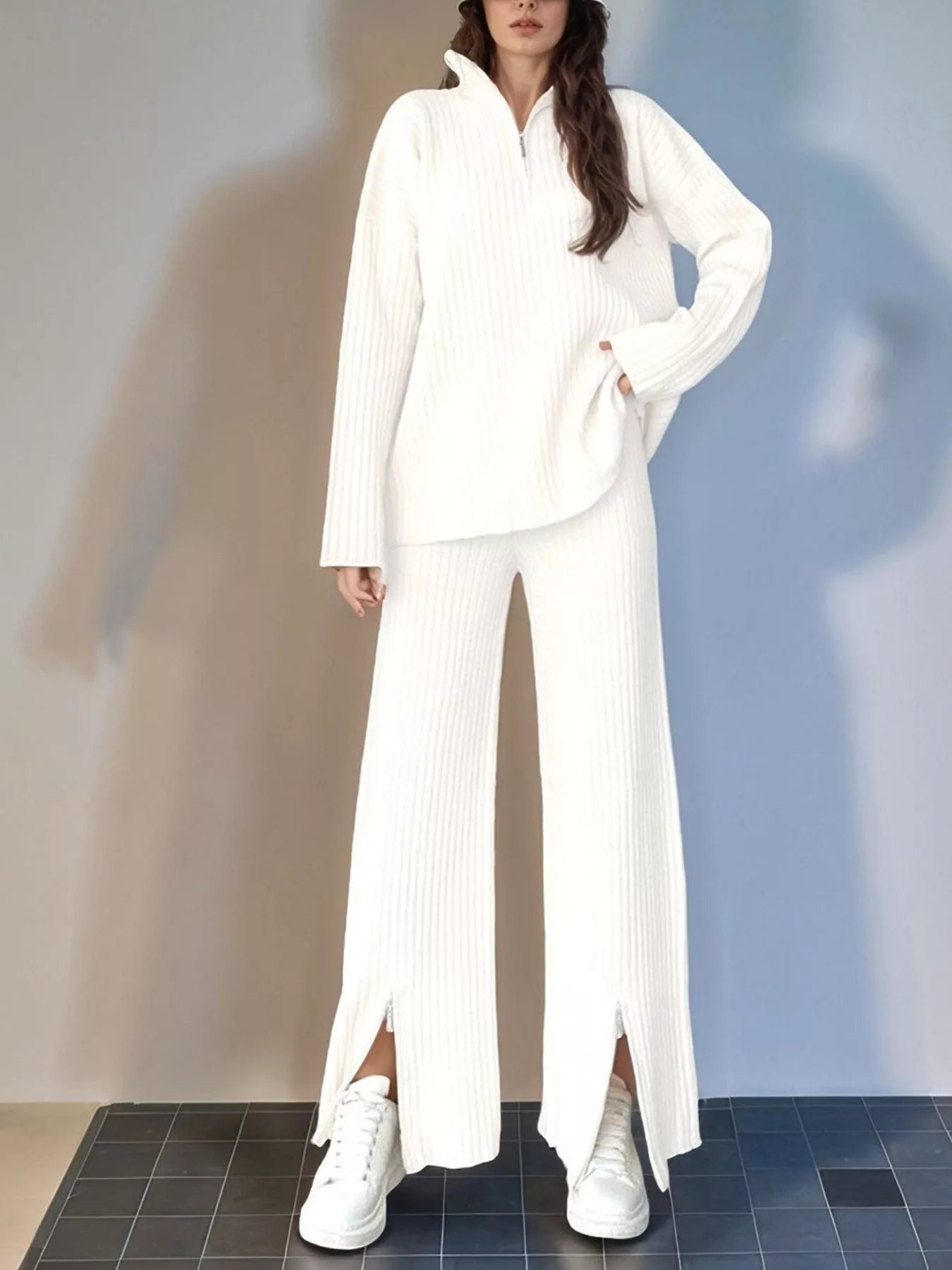Ribbed Knit Top and Pants Set
