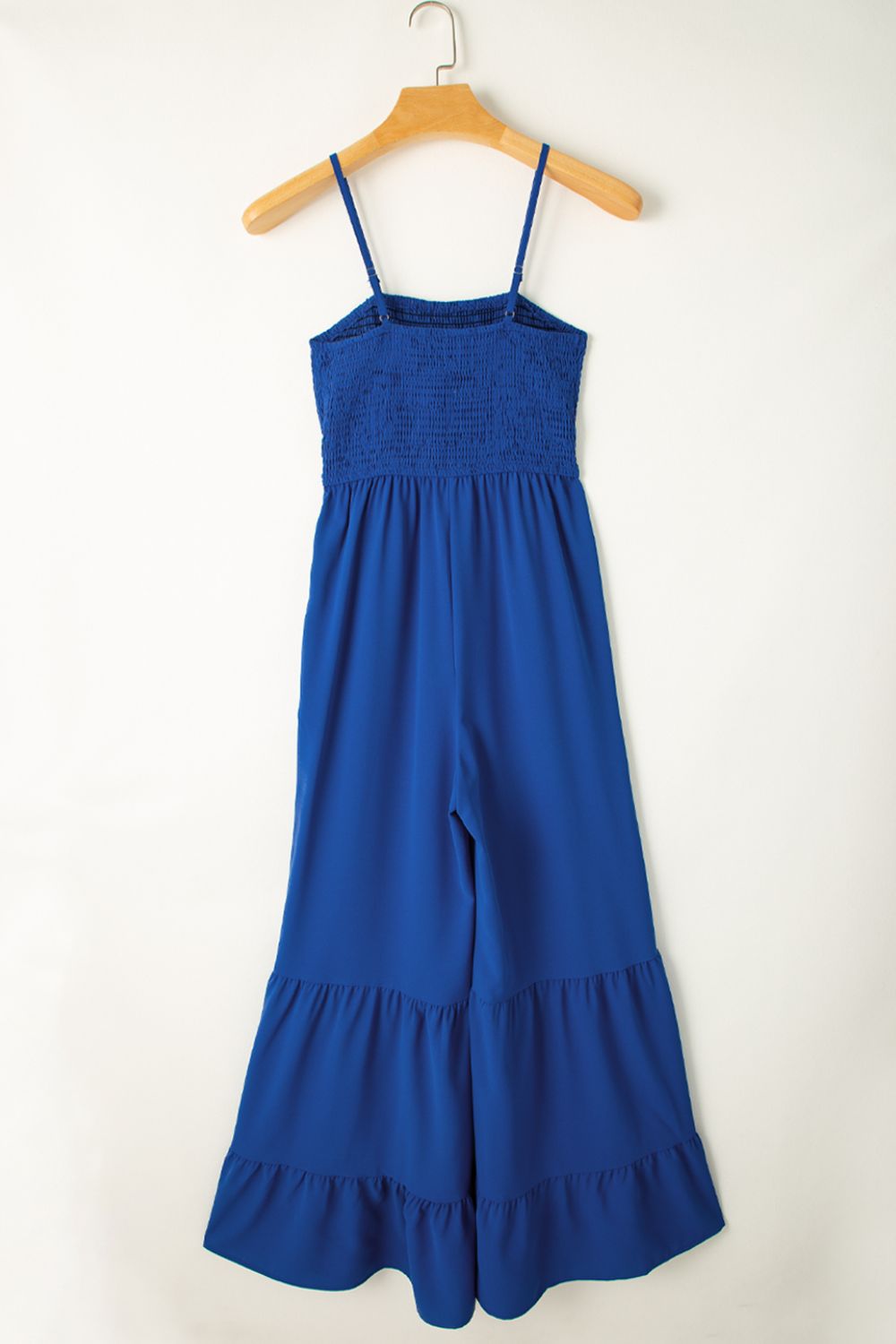 Spaghetti Straps Smocked Ruffled Wide Leg Jumpsuit