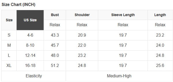 See size chart for approximate measurements