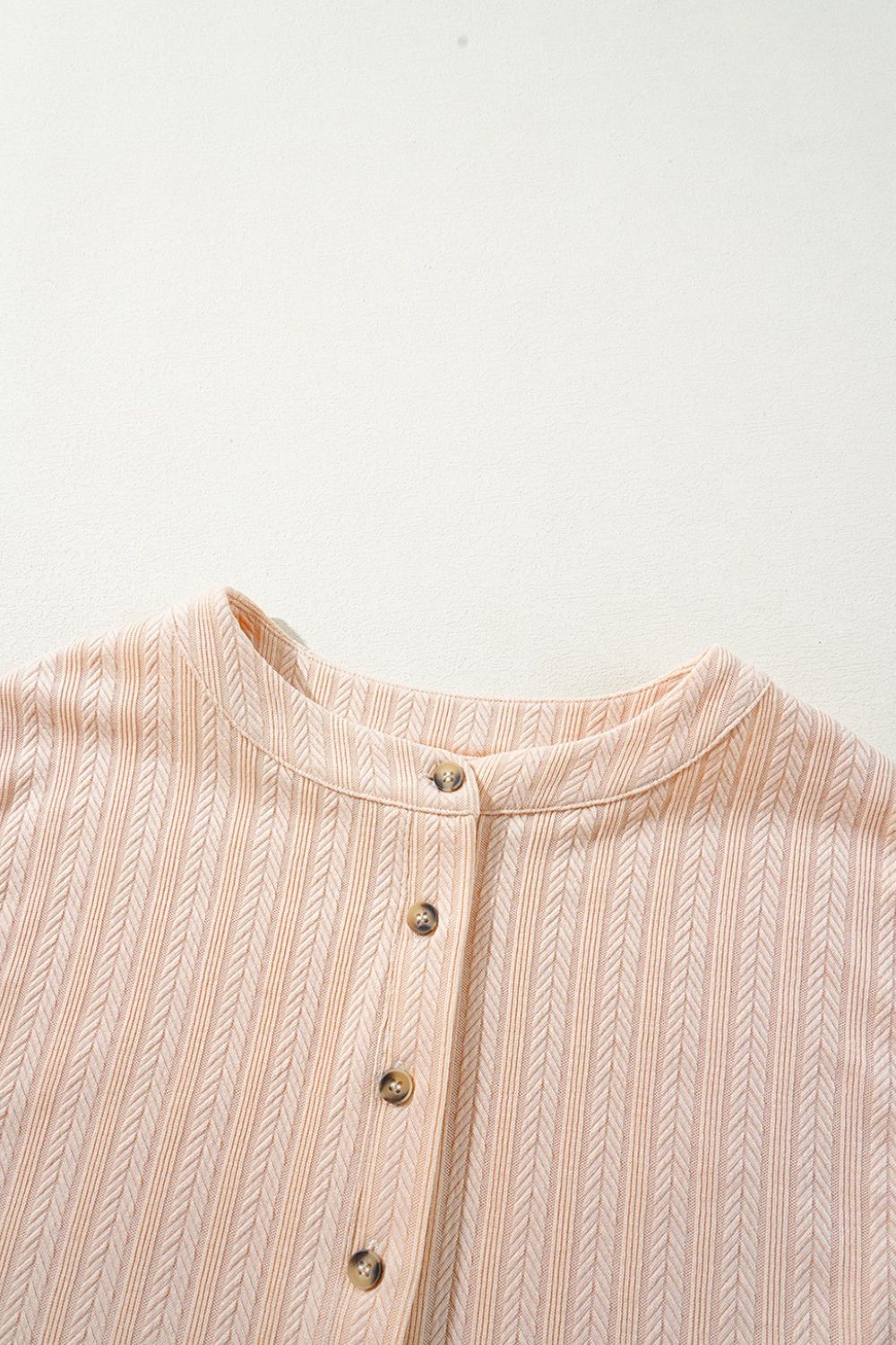 Textured Button Front Wide Leg Cap Sleeve Jumpsuit