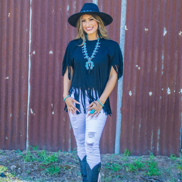 Embrace bold boho charm with this Turquoise Squash Blossom Necklace featuring a striking short black tassel and large Naja Pendant. Its classic western-inspired design pairs vibrant howlite turquoise stones with intricate silver detailing, making it a standout accessory for any outfit. Perfect for adding a touch of unique style and effortless flair, this necklace elevates your look with authentic Southwestern spirit.
