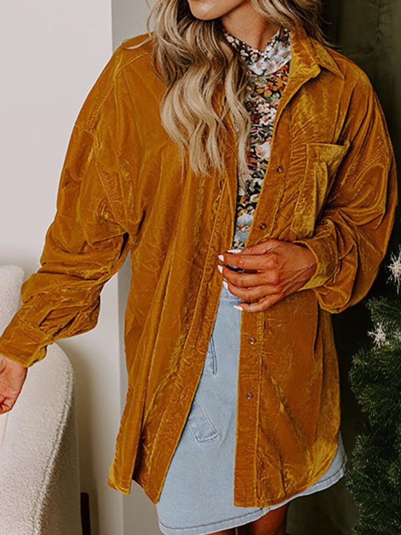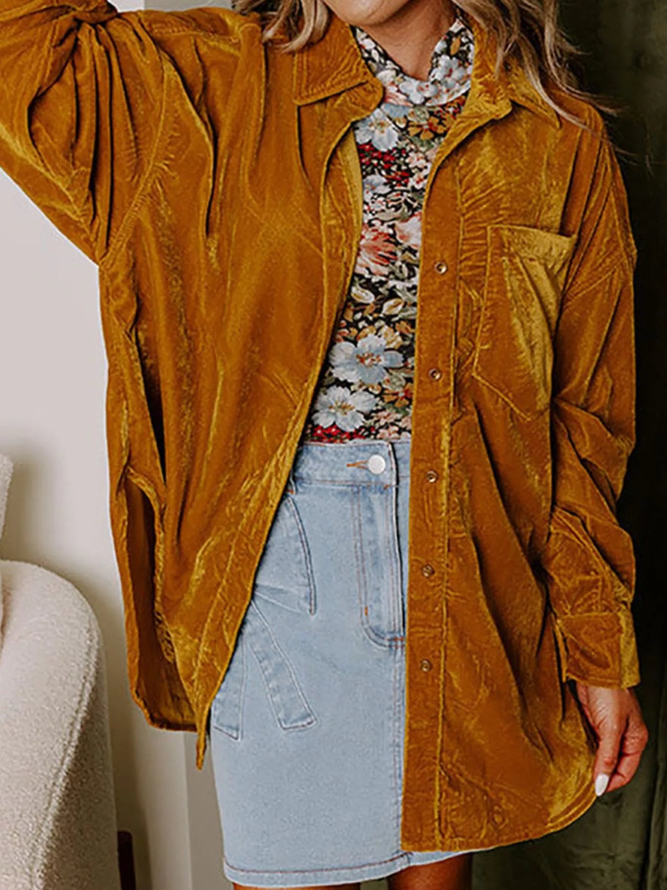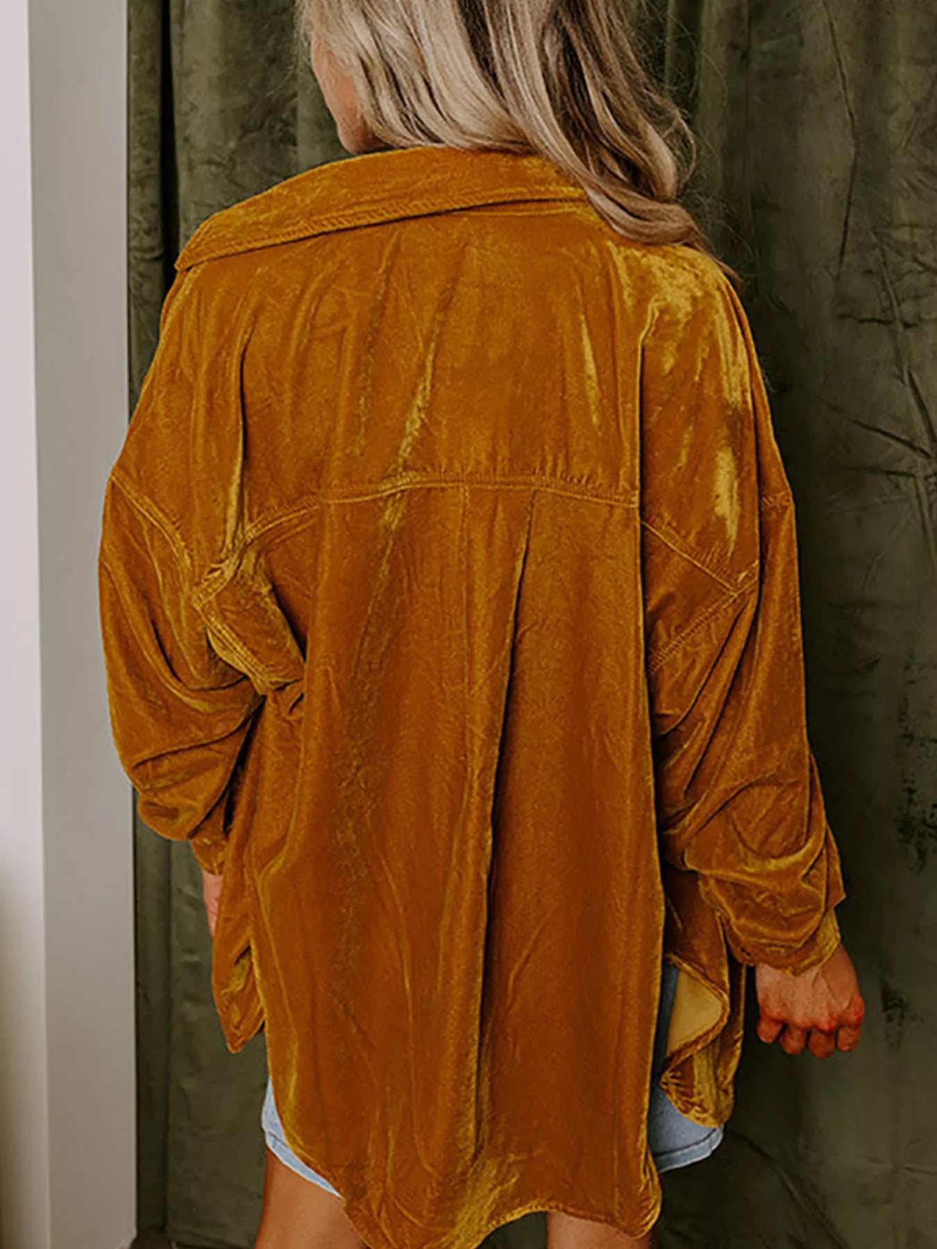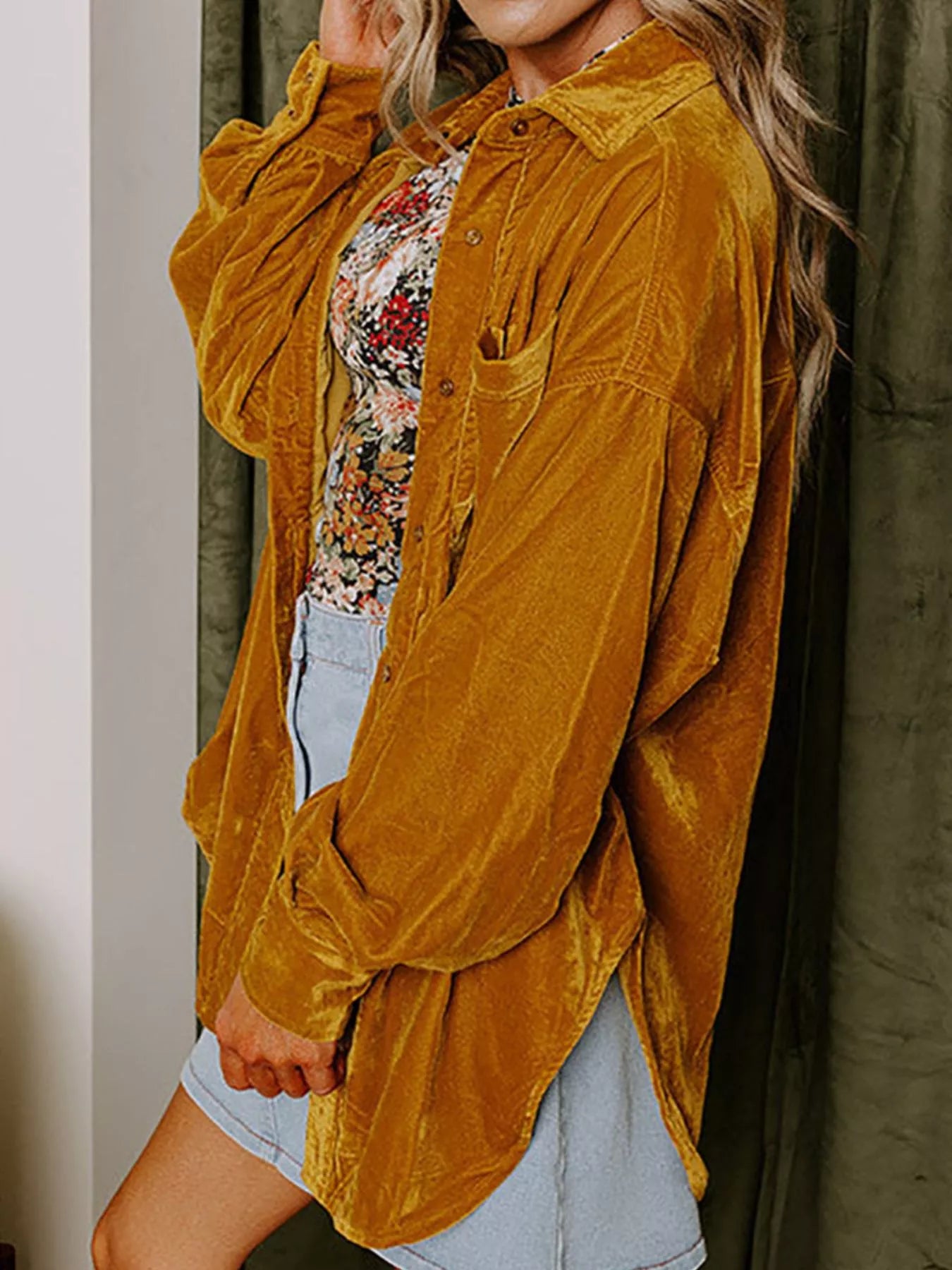 Velvet Button-Down Long Sleeve Shirt