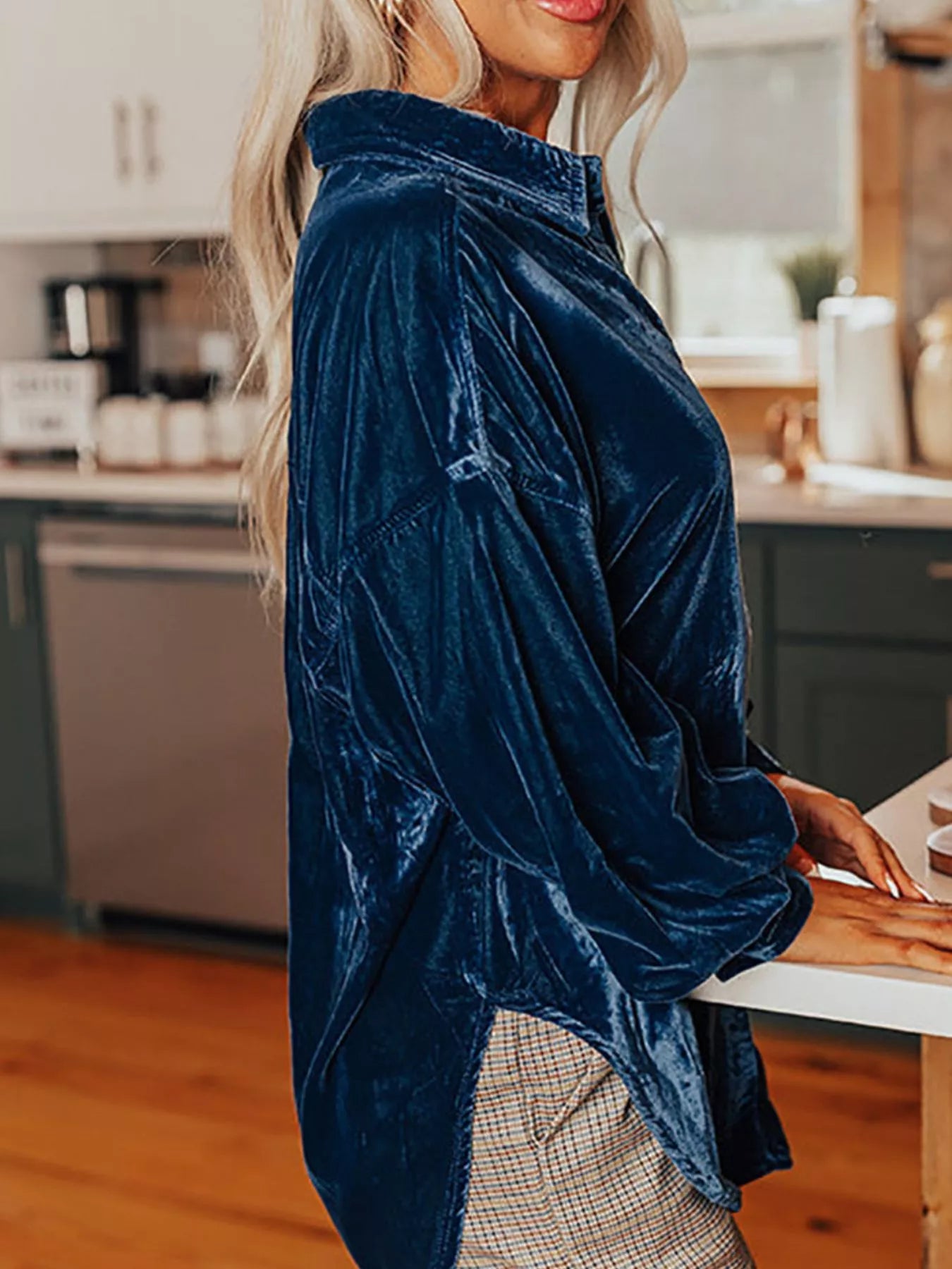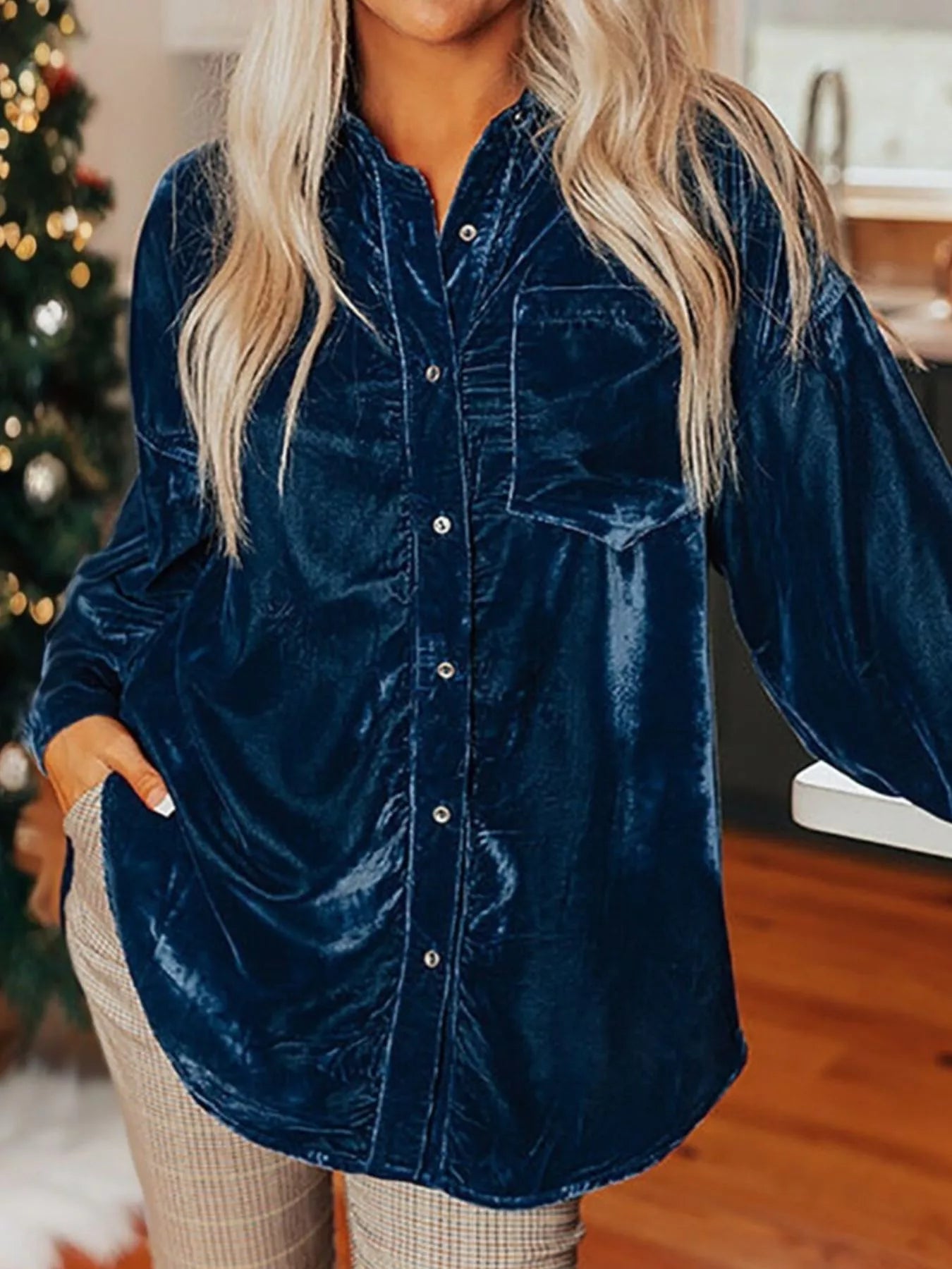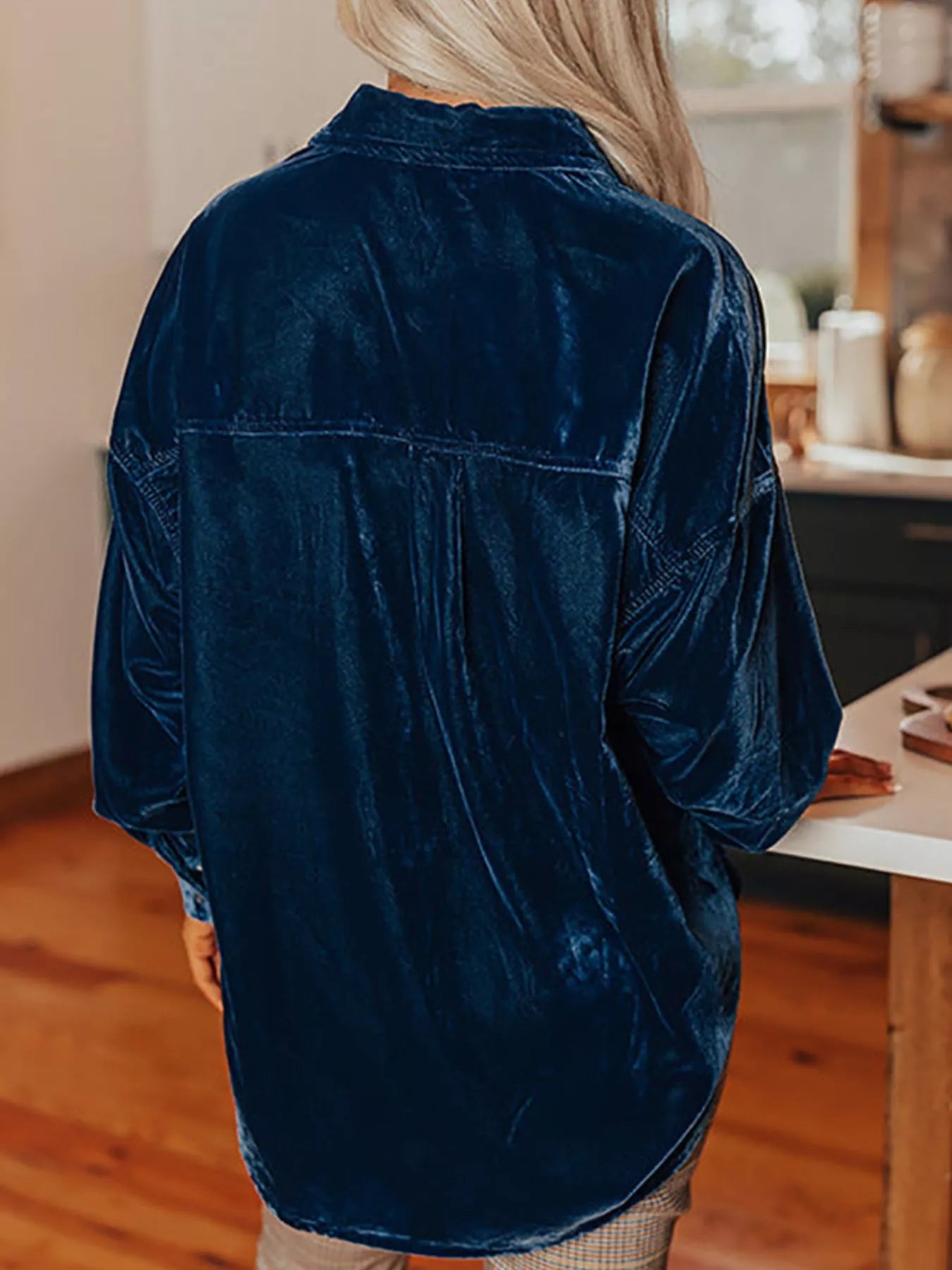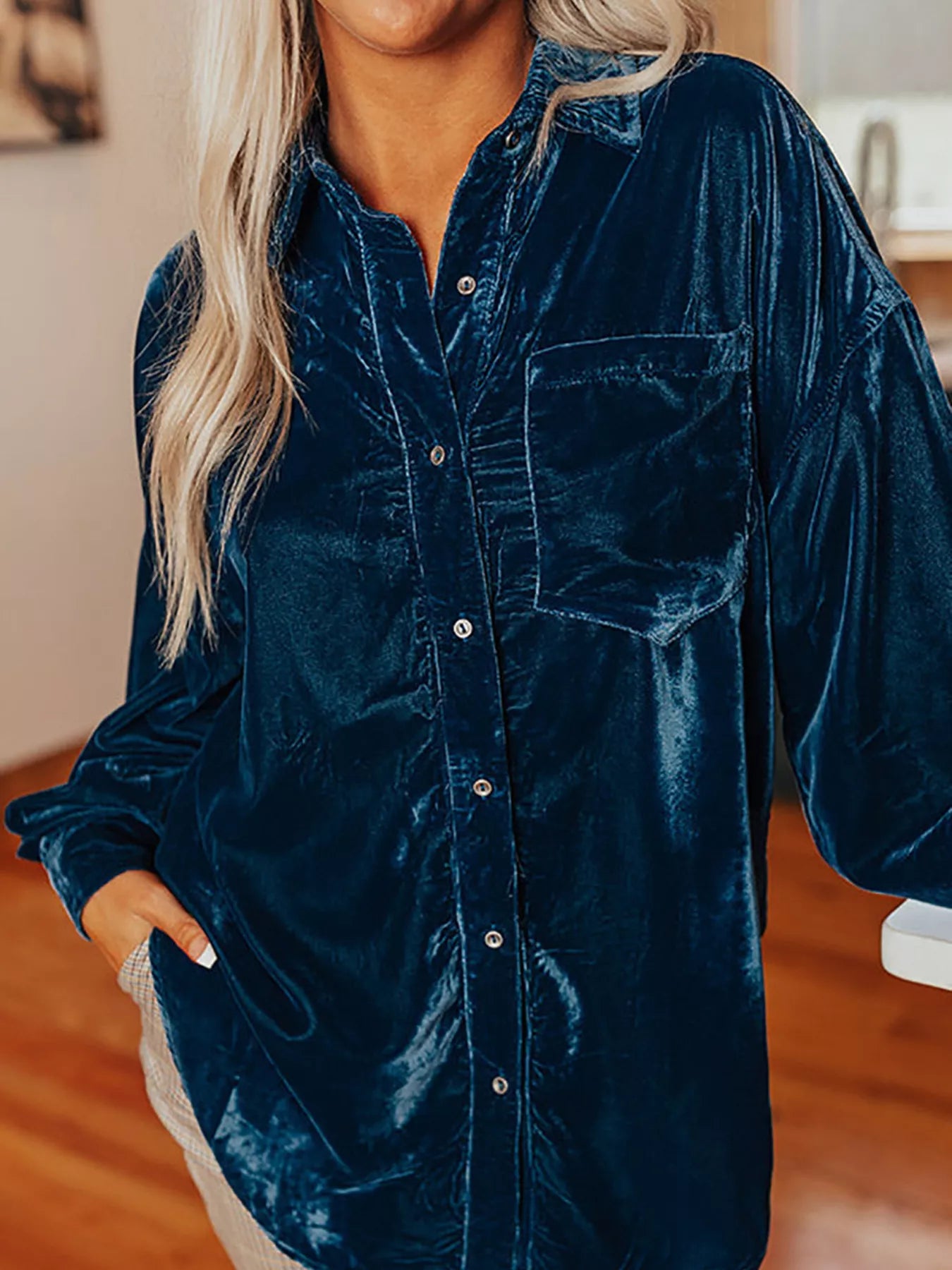 Velvet Button-Down Long Sleeve Shirt