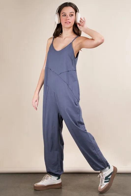 VERY J Sleeveless Knit Comfy Casual Jumpsuit
